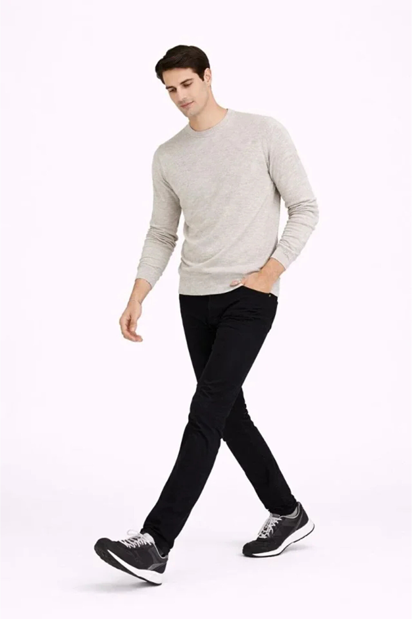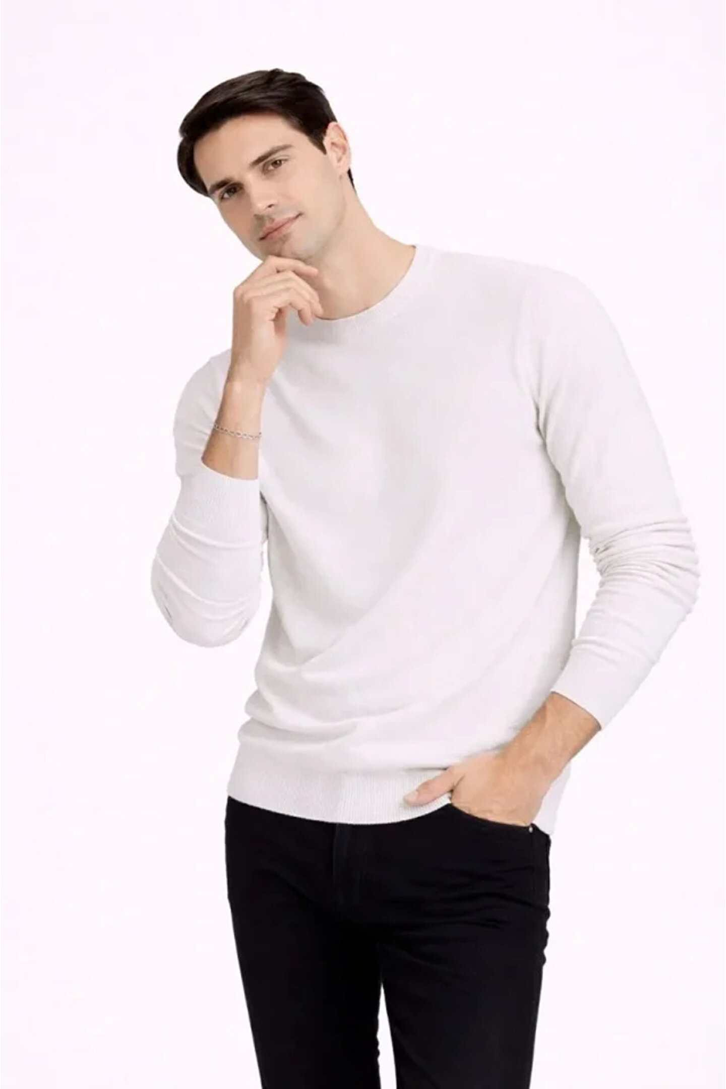 Erkek Bisiklet Yaka Triko Kazak Yumuşak Dokulu Pamuklu Ince Dokuma, Uzun Kollu Rahat Regular Kalıp - Bej