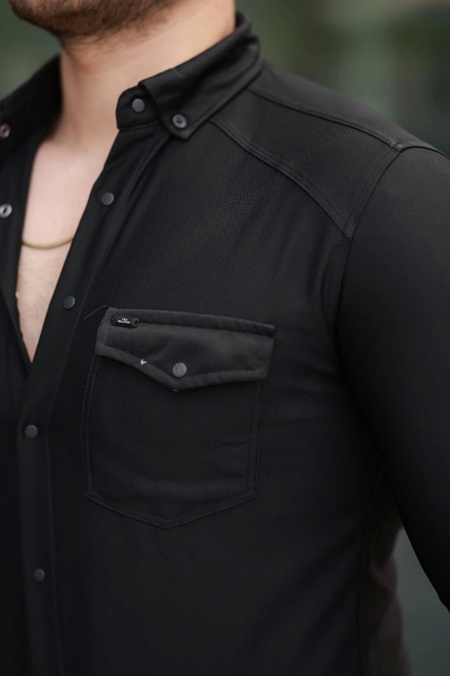 Silerra Erkek çift Cepli çıtçıt Düğmeli Uzun Kollu Gömlek