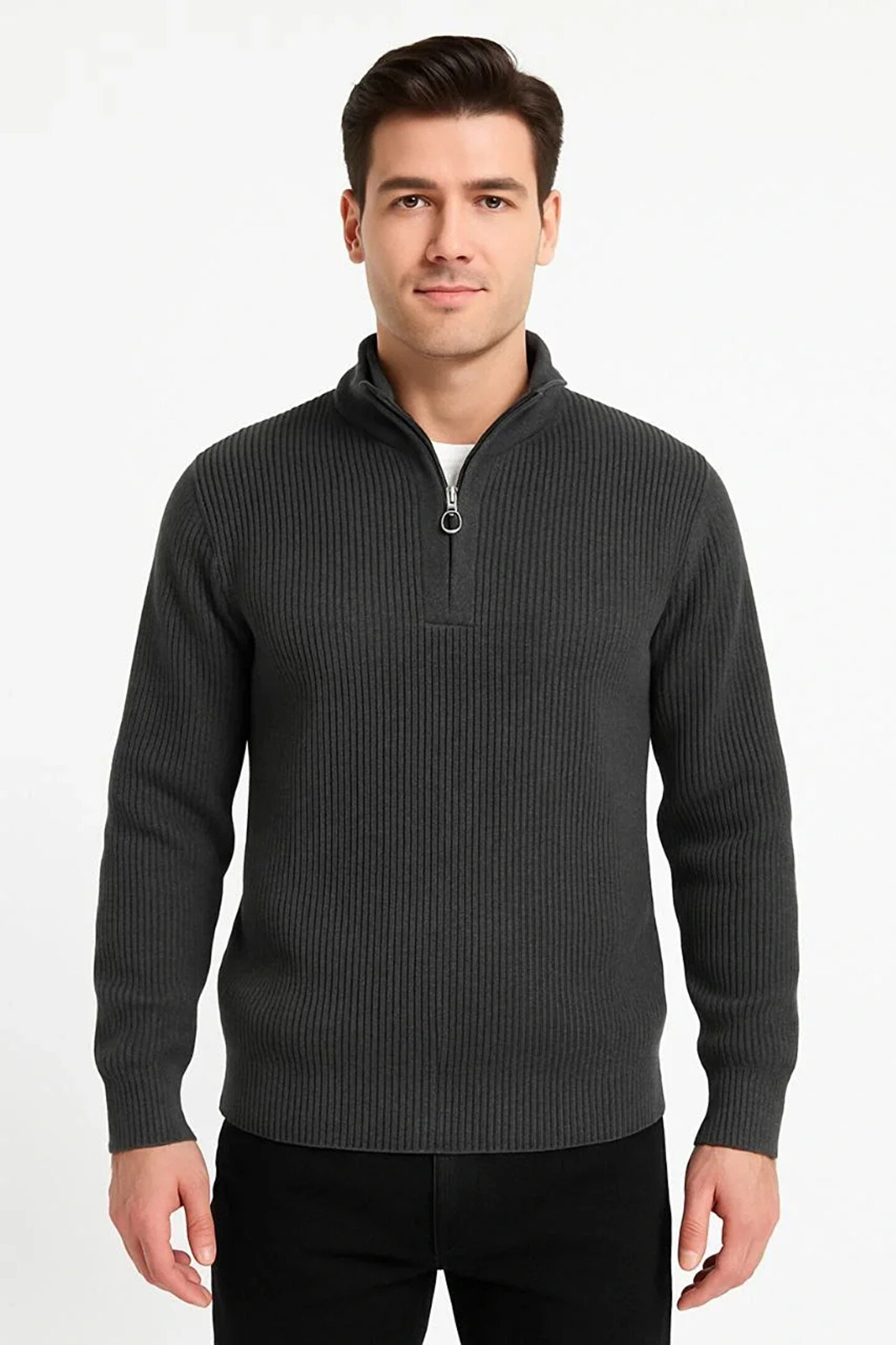 Silerra Erkek Fitilli Triko Kazak 3’lü Set – Haki, Siyah, Antrasit Kalın Dokuma Pamuklu Regular Fit V Yaka F