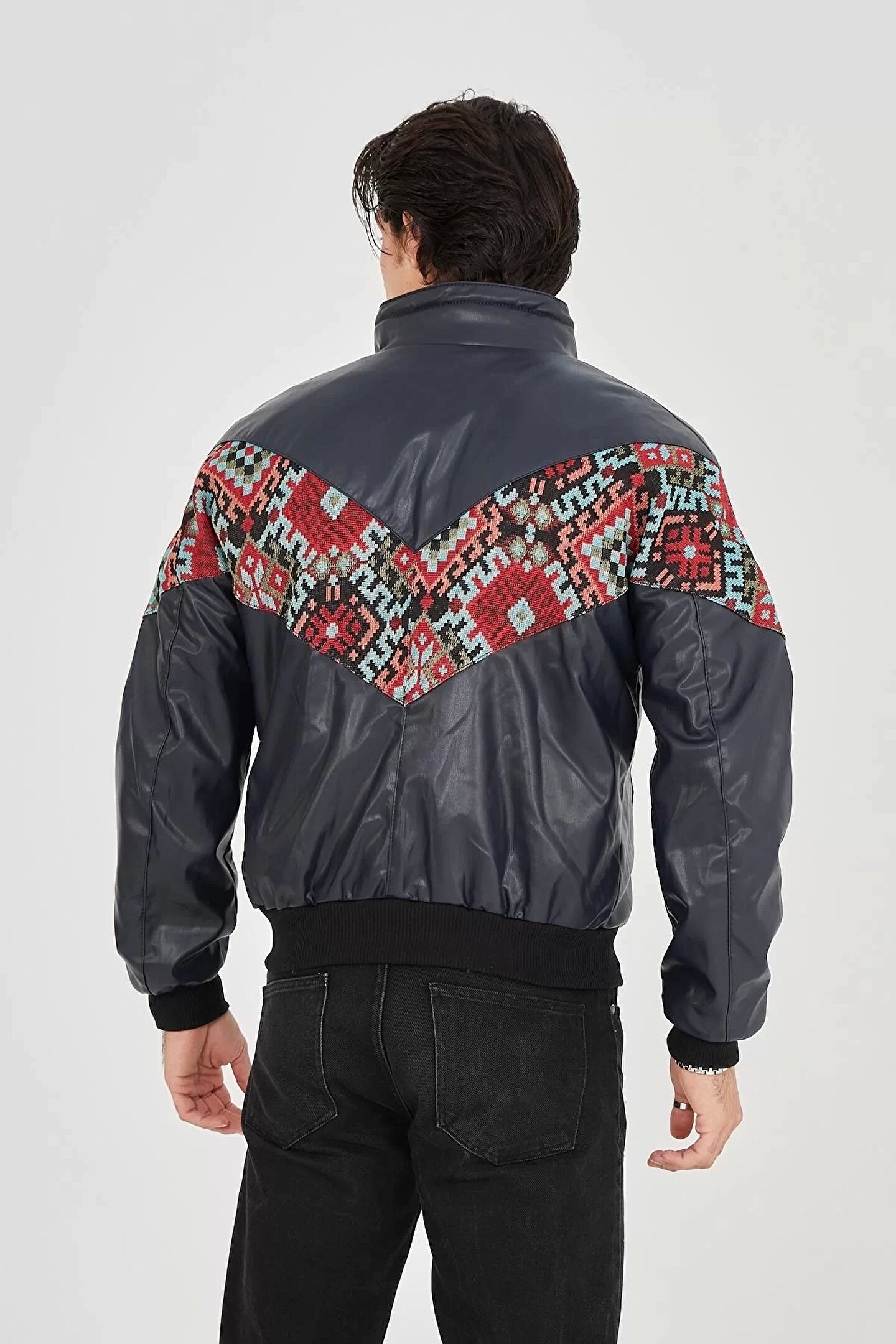 Silerra Erkek İçi Astarlı İçten Yaka Kısmı Peluşlu Suni Kumaş Vintage Ceket - Lacivert