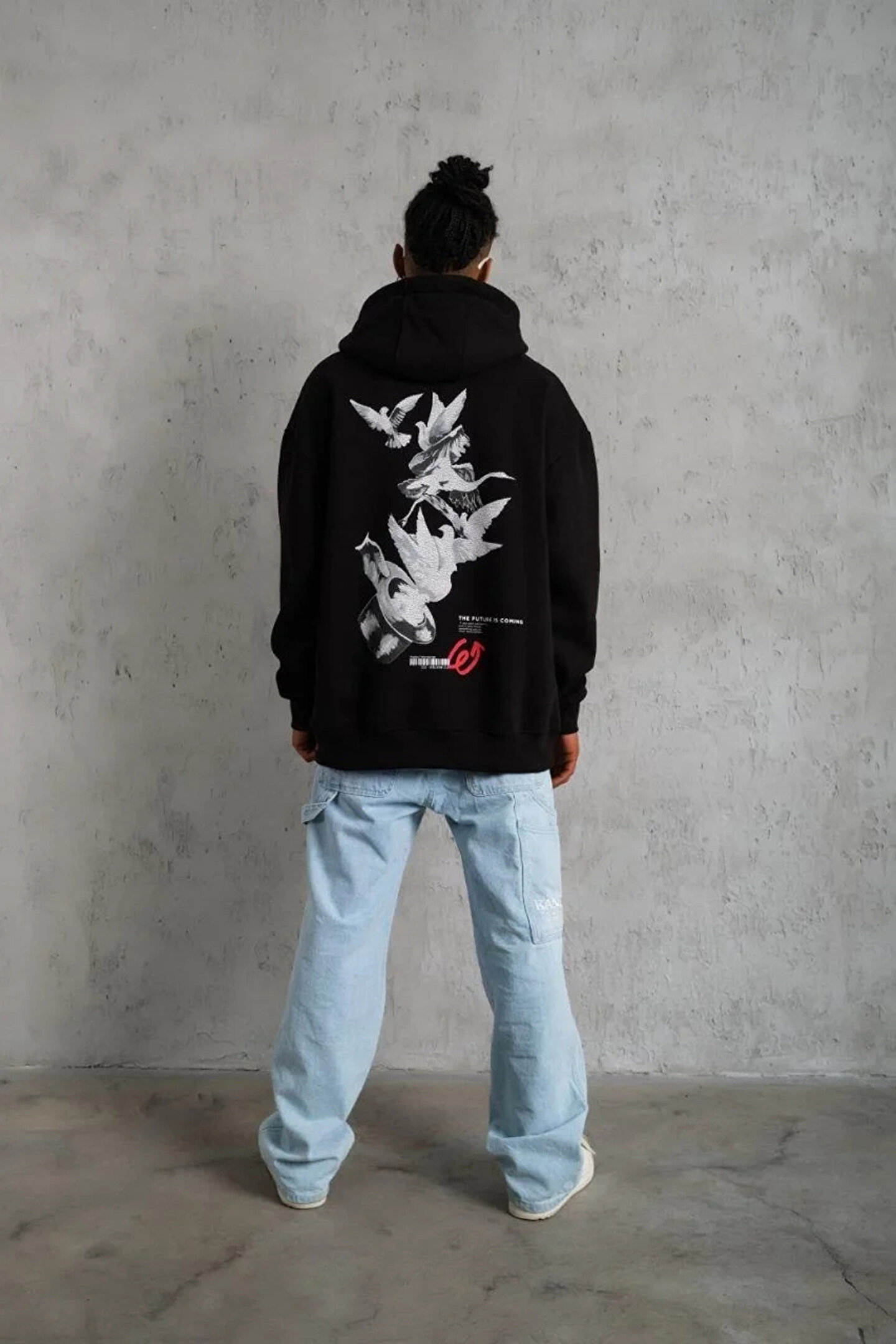 Silerra Erkek Şapkalı Güvercin Baskılı Kapşonlu Sweat - Siyah