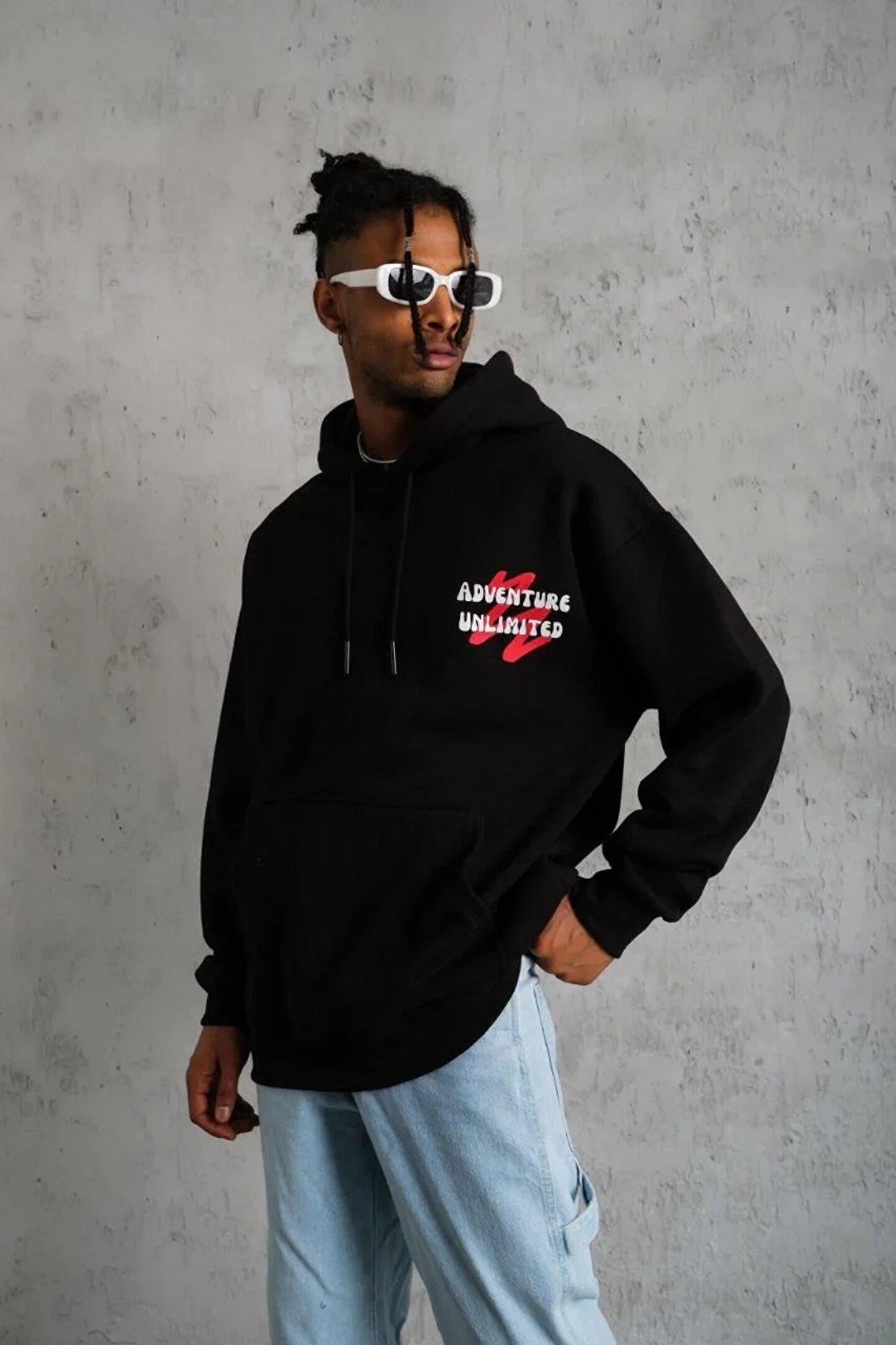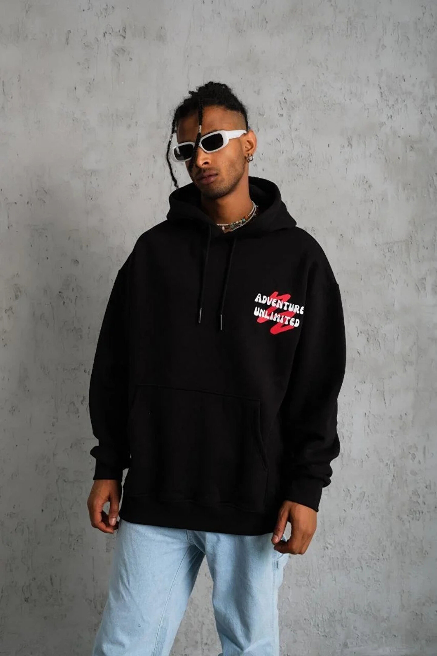 Silerra Erkek Şapkalı Güvercin Baskılı Kapşonlu Sweat - Siyah