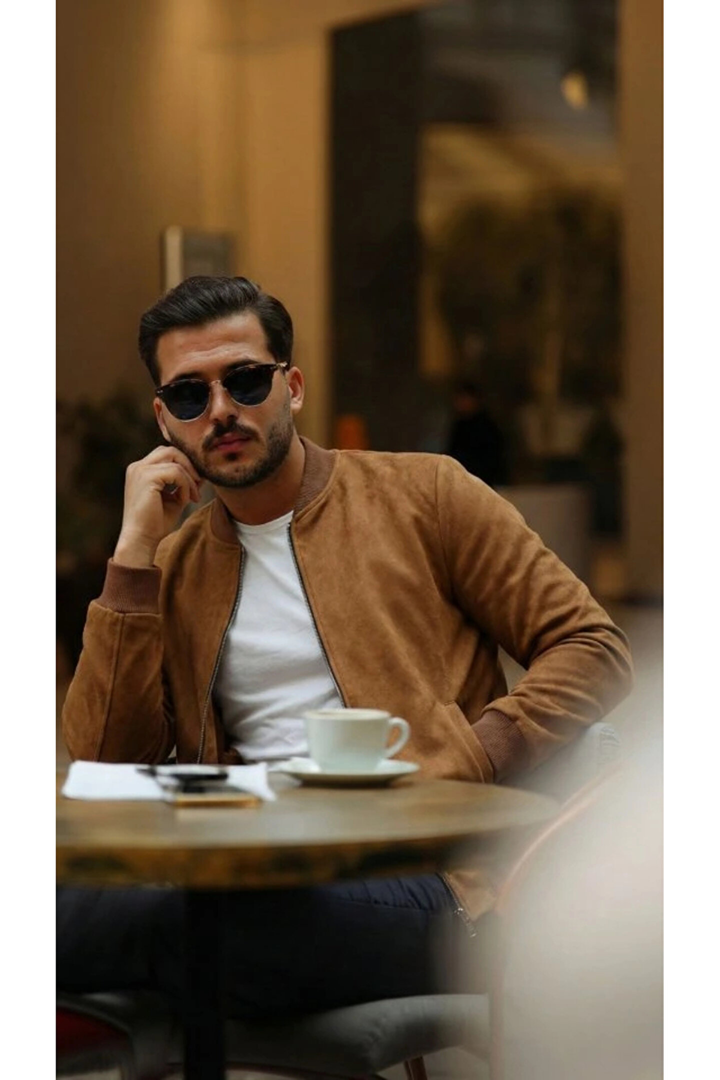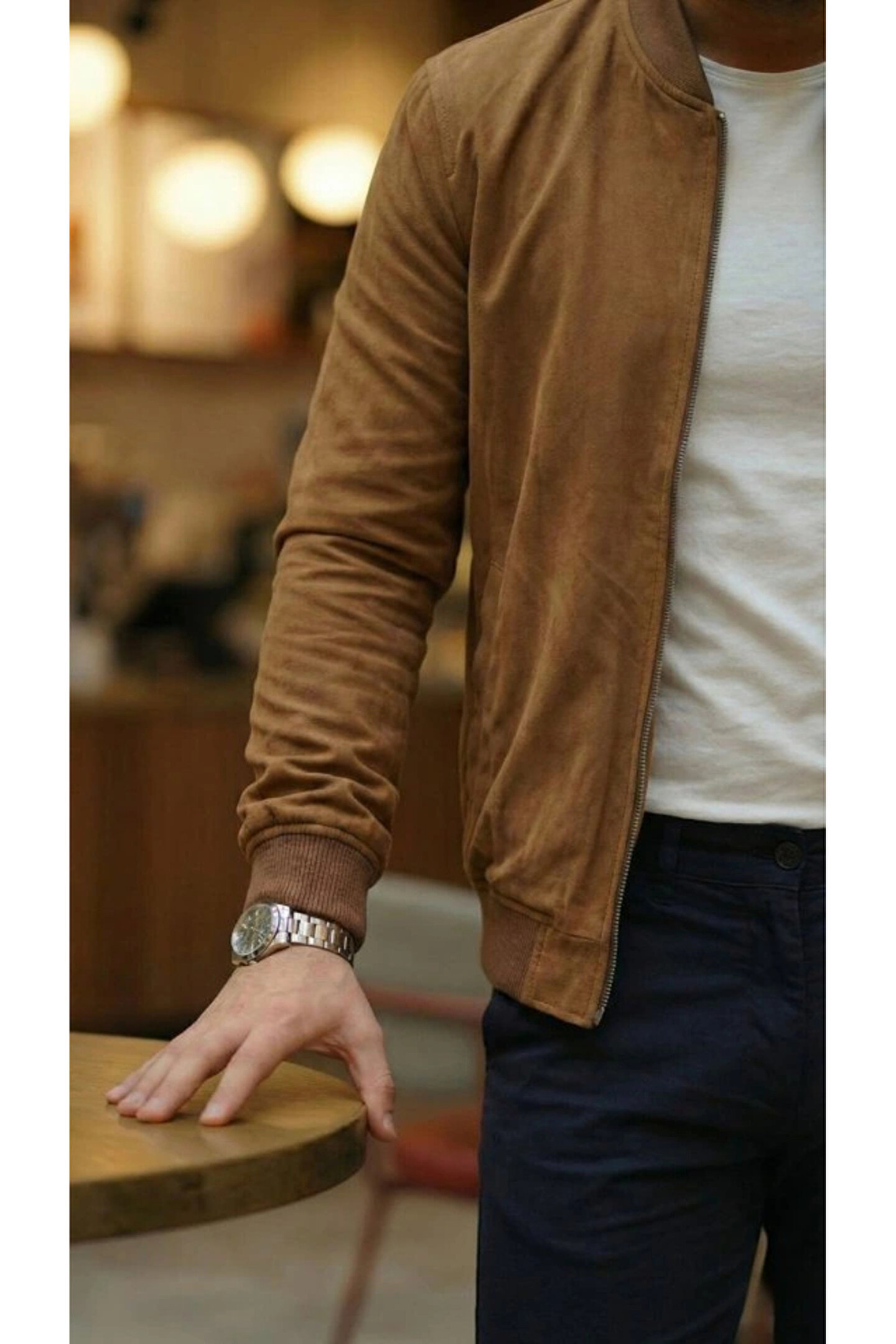 Erkek Scuba Süet Kumaş Bomber Hırka