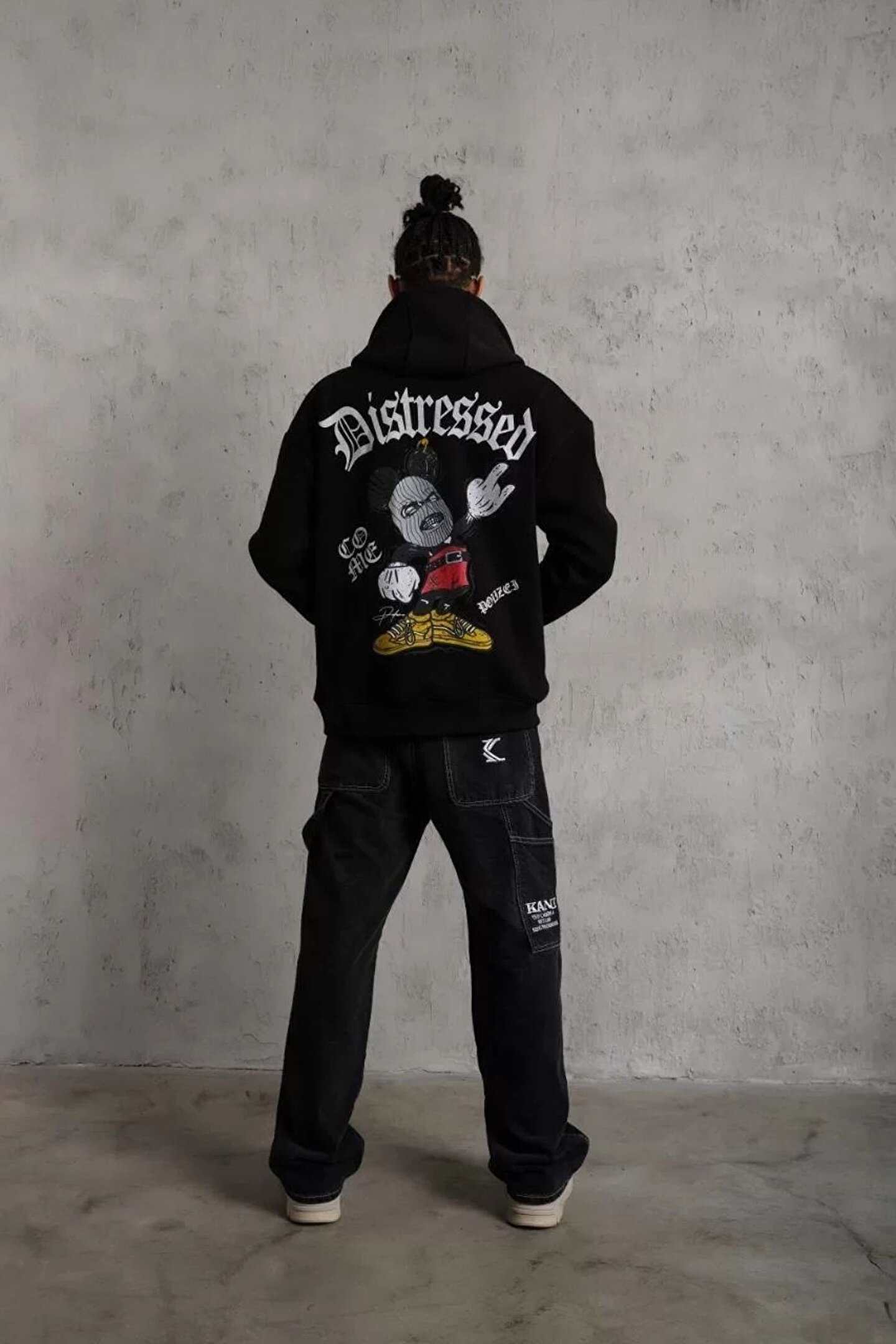 Silerra Erkek Üç İplik Baskılı Kapüşonlu Sweat - Siyah