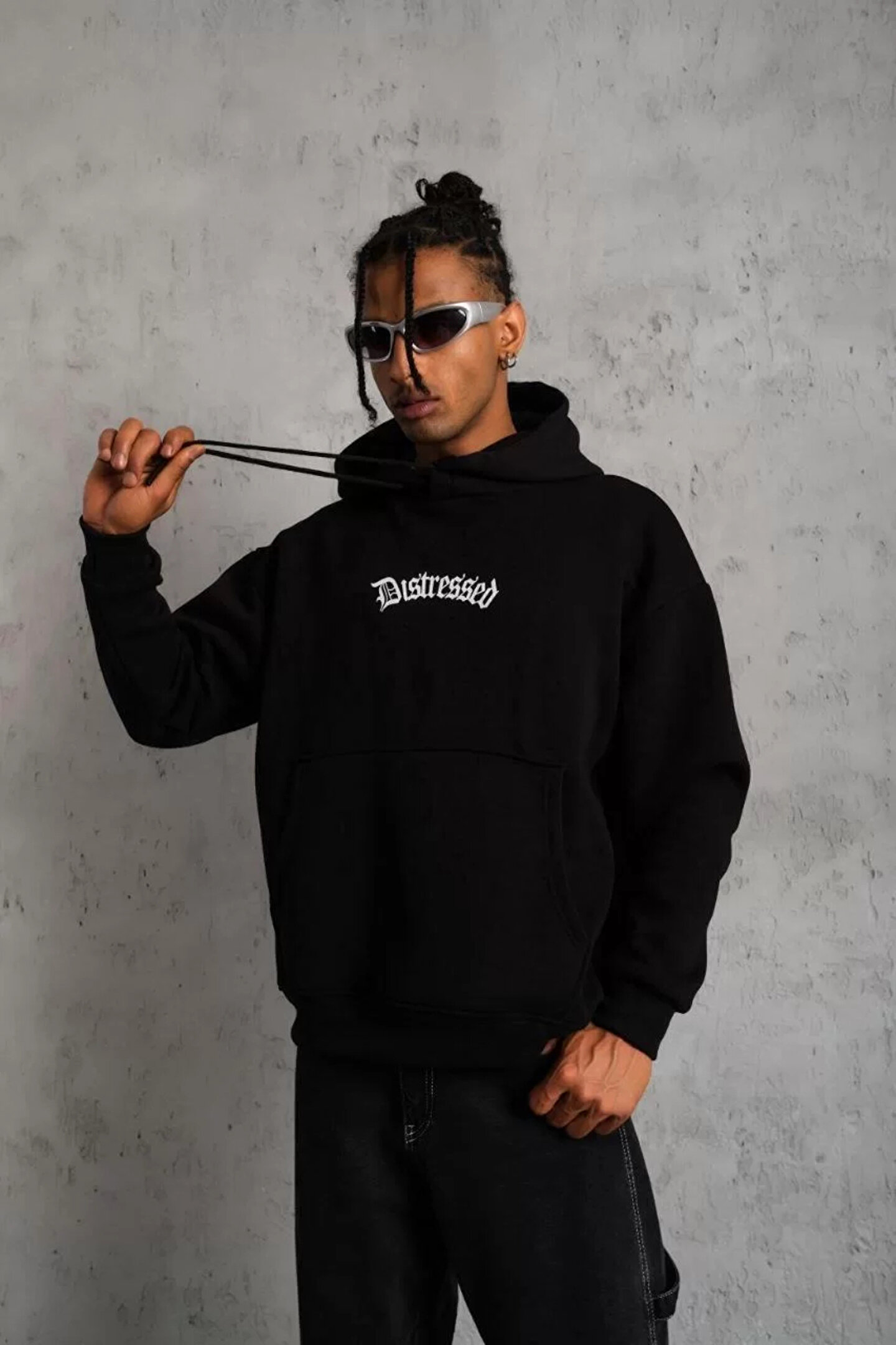 Silerra Erkek Üç İplik Baskılı Kapüşonlu Sweat - Siyah