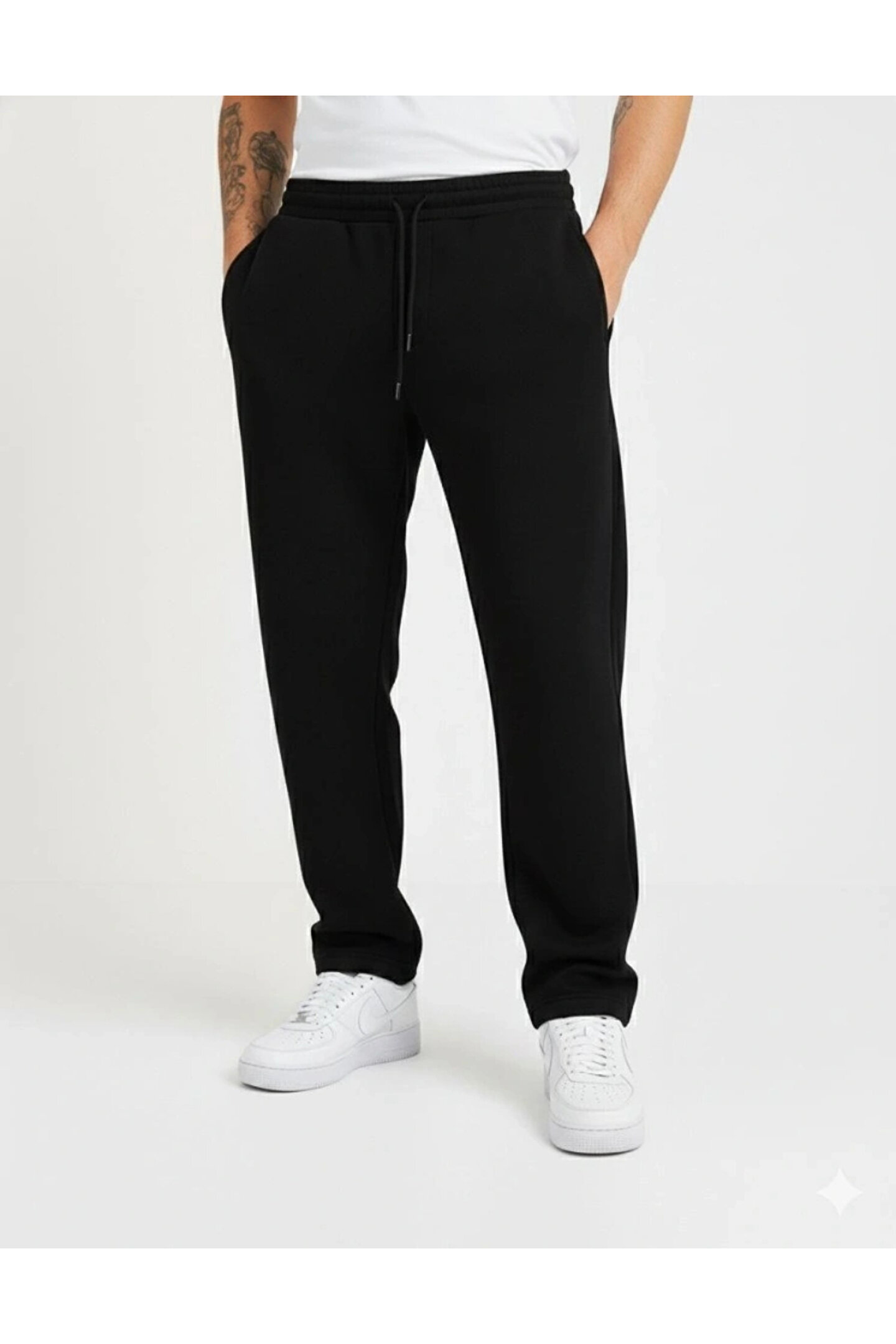 Erkek Üç Iplik Kışlık Pamuklu Ovarsize Bağcıklı Düz Paça Cepli Eşofman Altı Spor Rahat Model - Siyah
