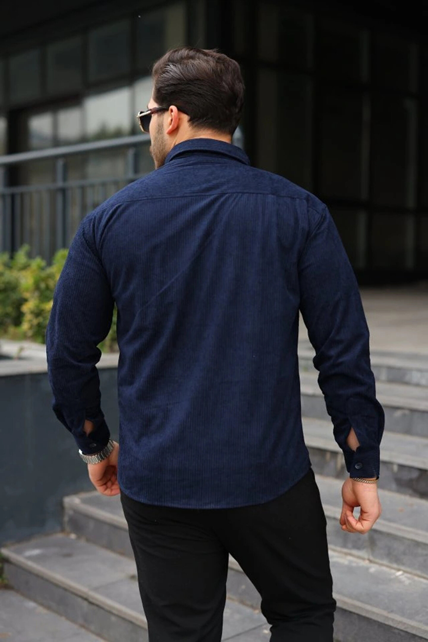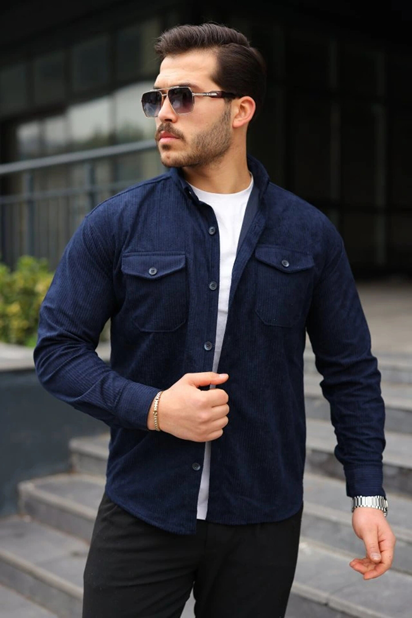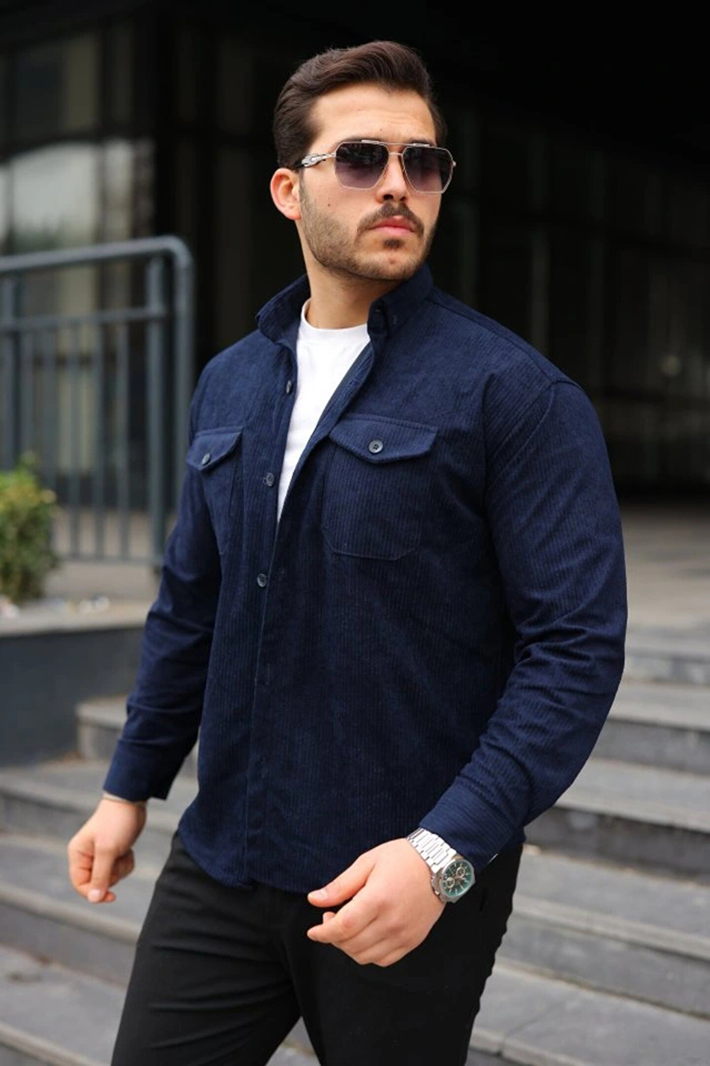 Erkek Uzun Kollu Cepli Kadife Gömlek