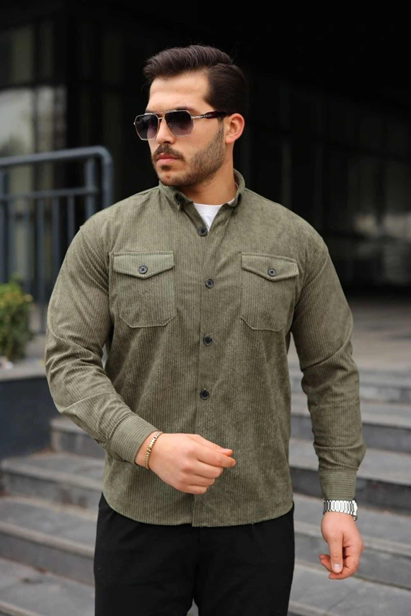 Erkek Uzun Kollu Cepli Kadife Gömlek