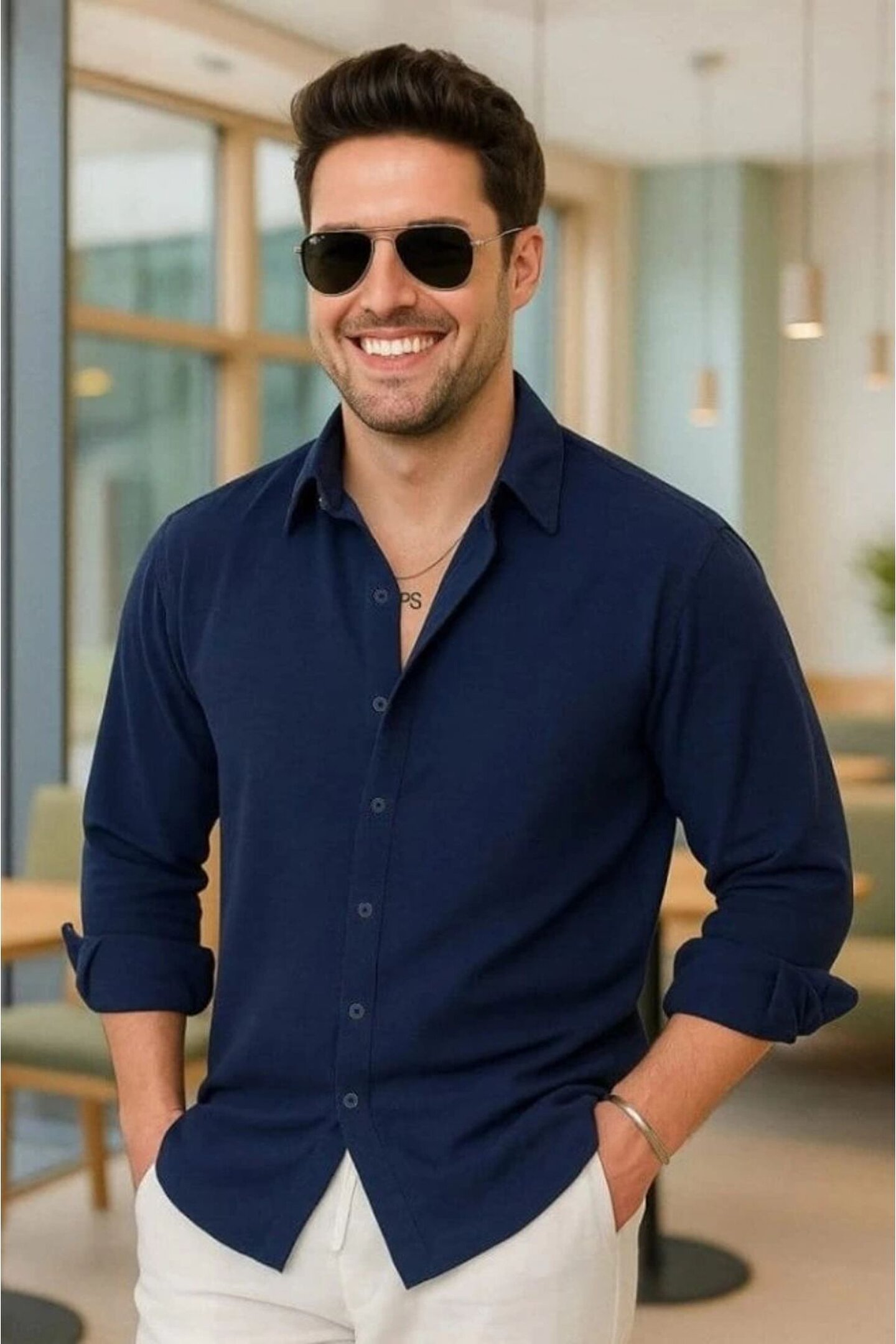 Düğmeli Ve Çizgi Detaylı Siyah Gömlek