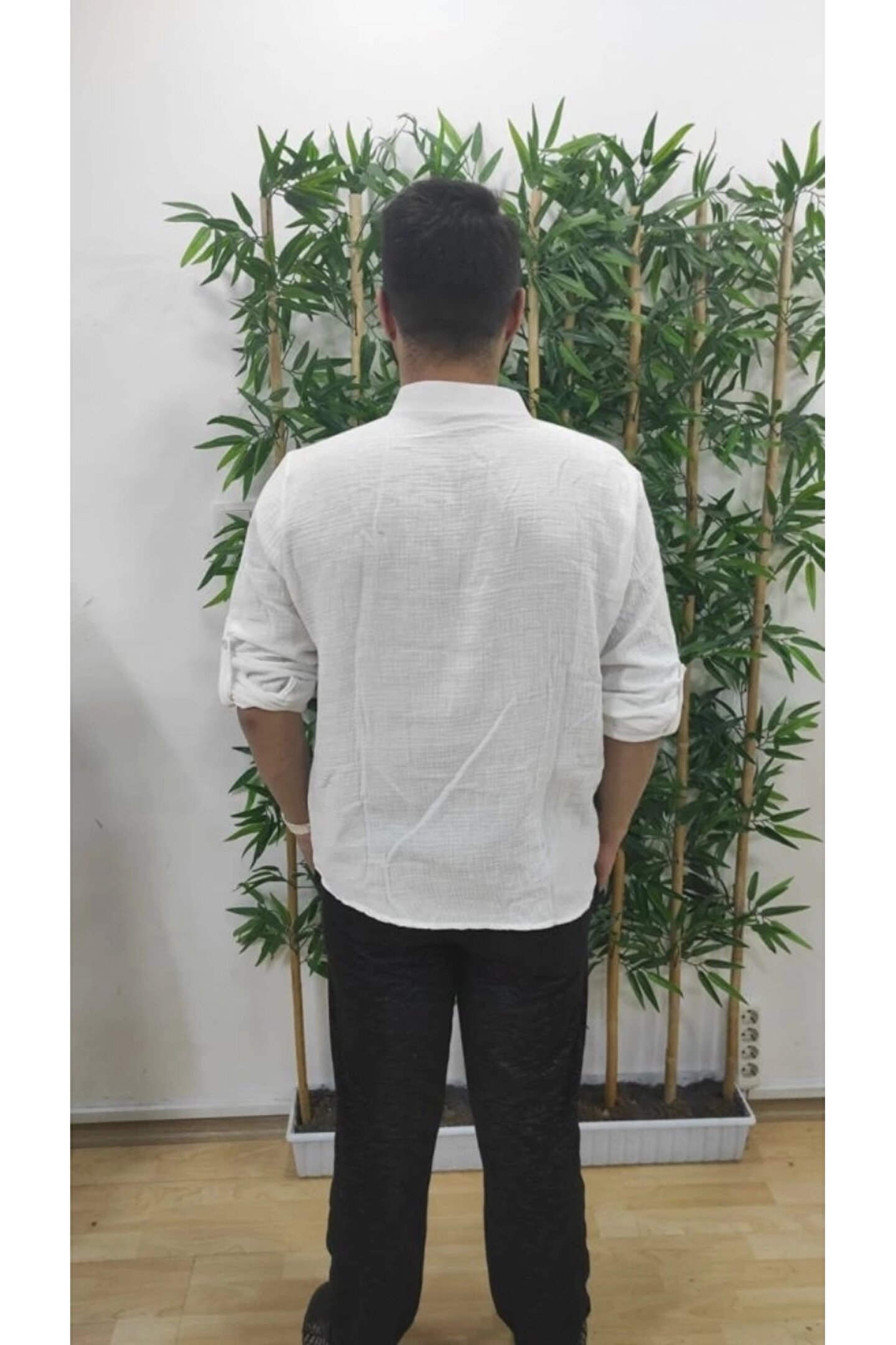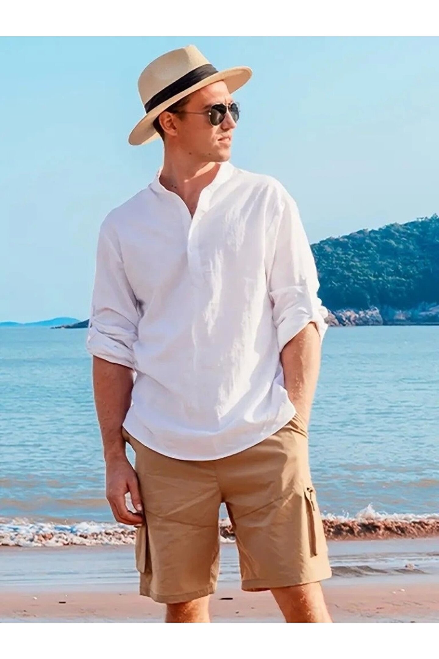 Erkek Uzun Kollu Hakim Yaka Düğmeli Erkek Müslim Gömlek