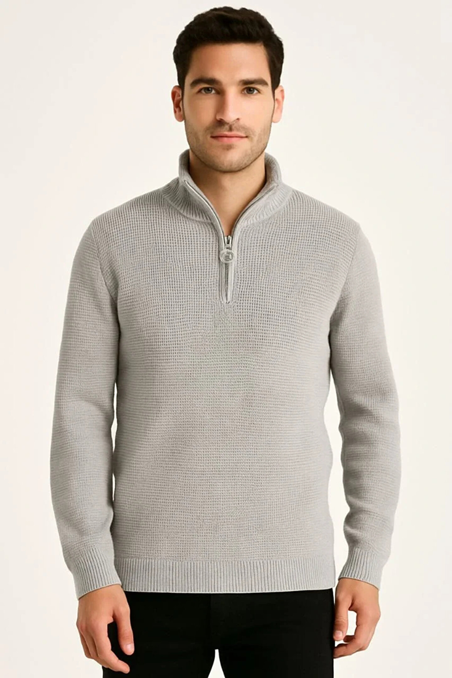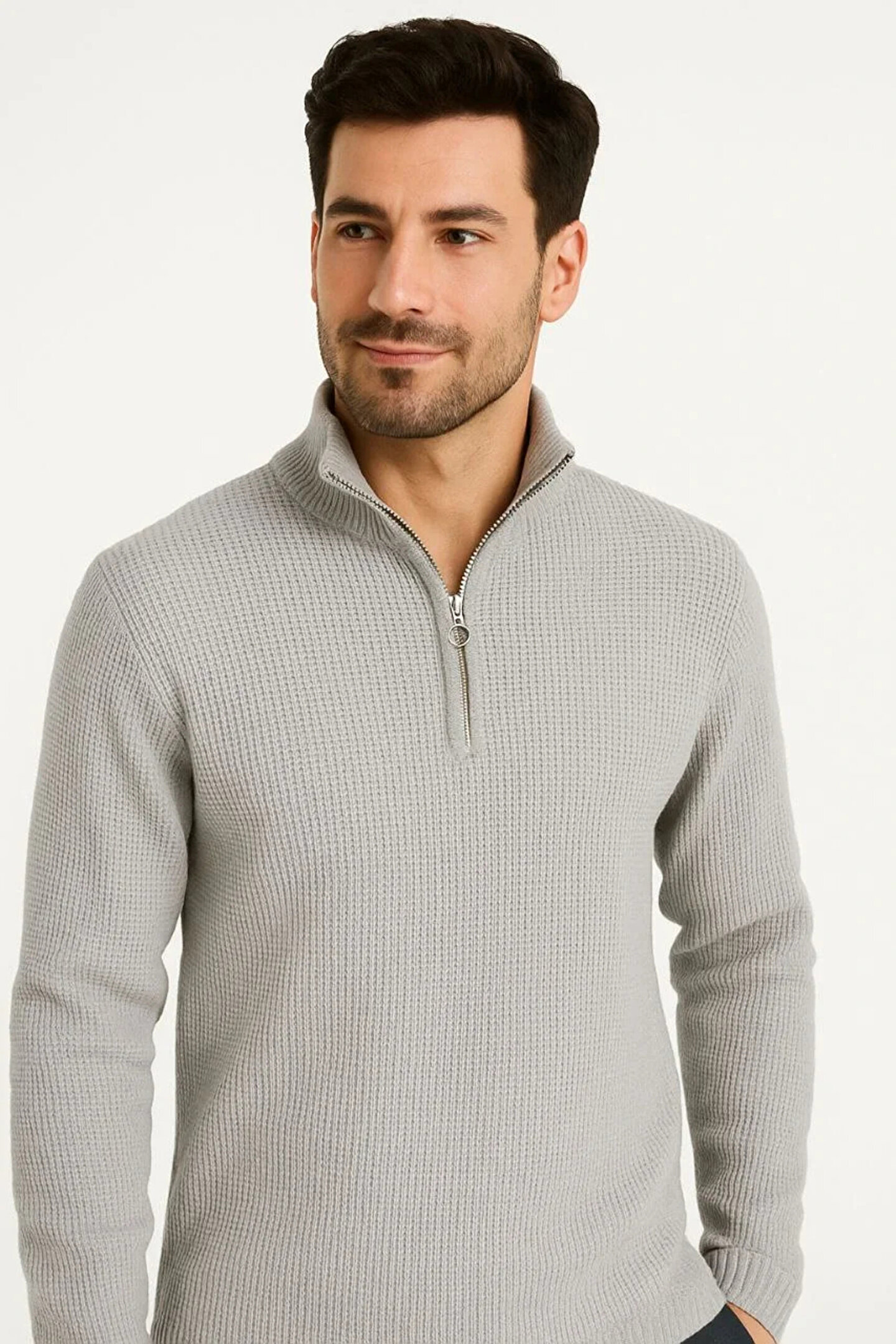 Silerra Erkek Yarım Fermuarlı Triko Kazak – Selanik Örgü, Dik Yaka, Pamuklu Dokuma, Regular Fit Uzun Kollu K
