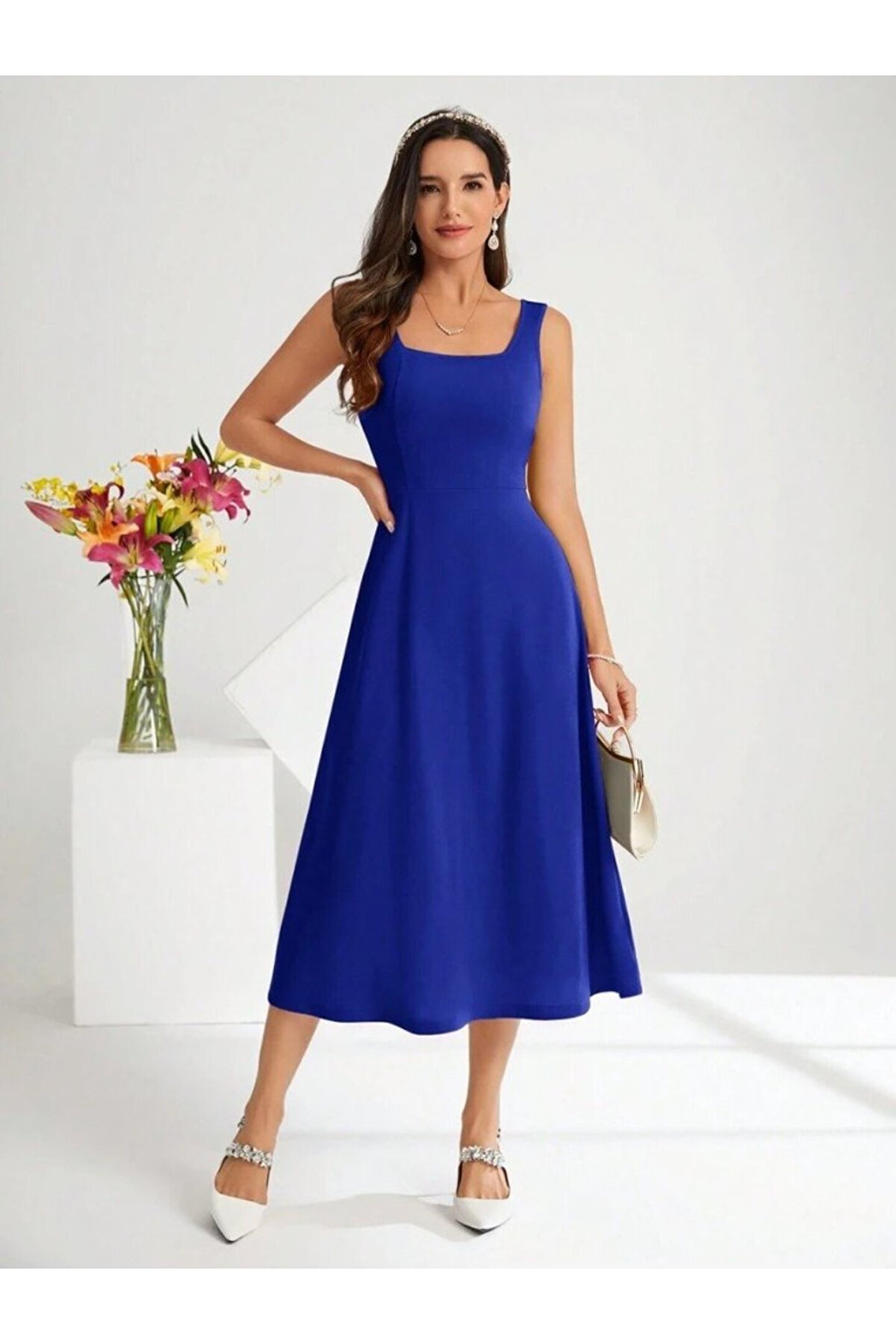 Kadın Askılı Kare Yakalı Midi Ithal Krep Elbise