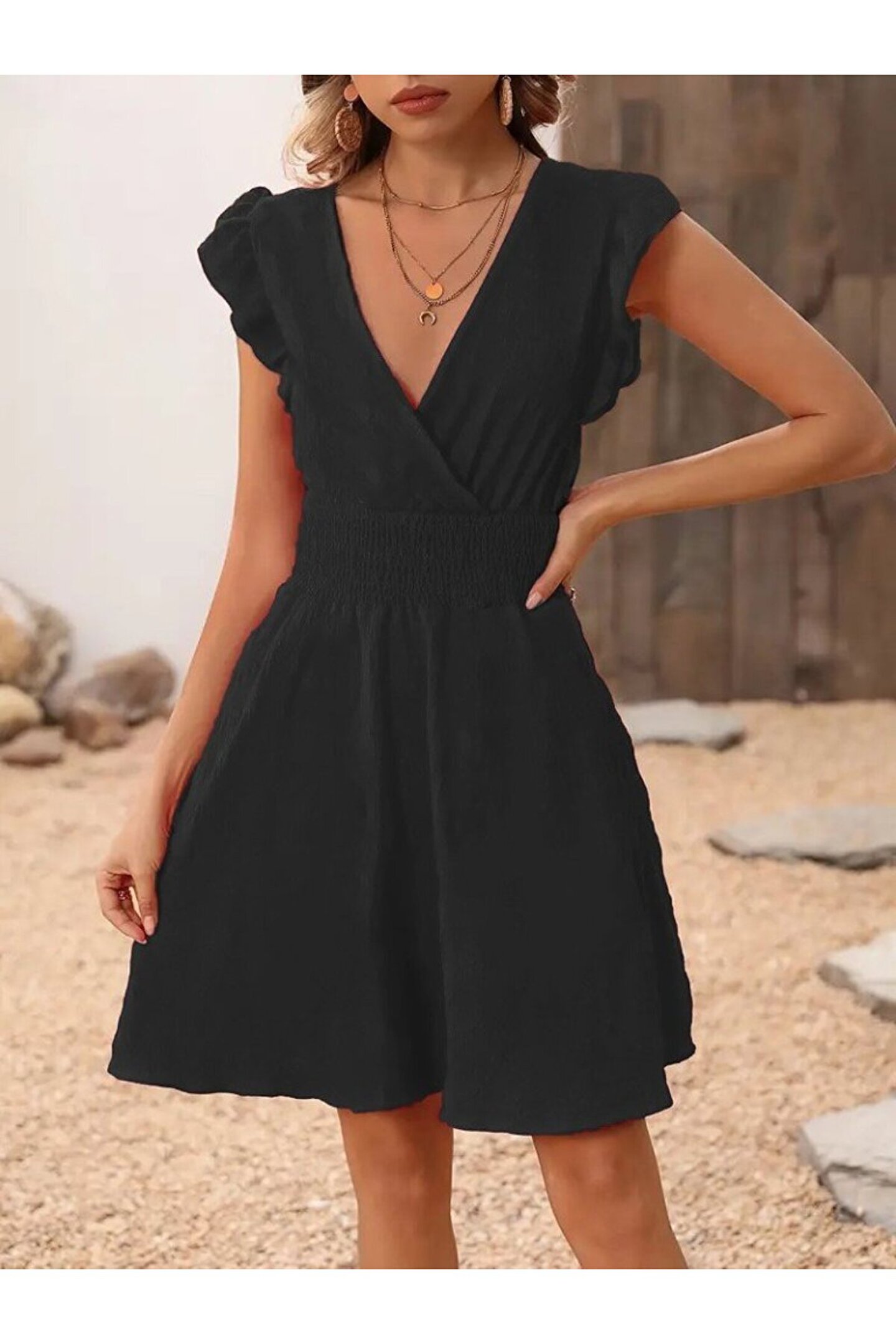 Kadın Kısa Kollu Kruvaze Yakalı Beli Lastikli Aerobin Elbise