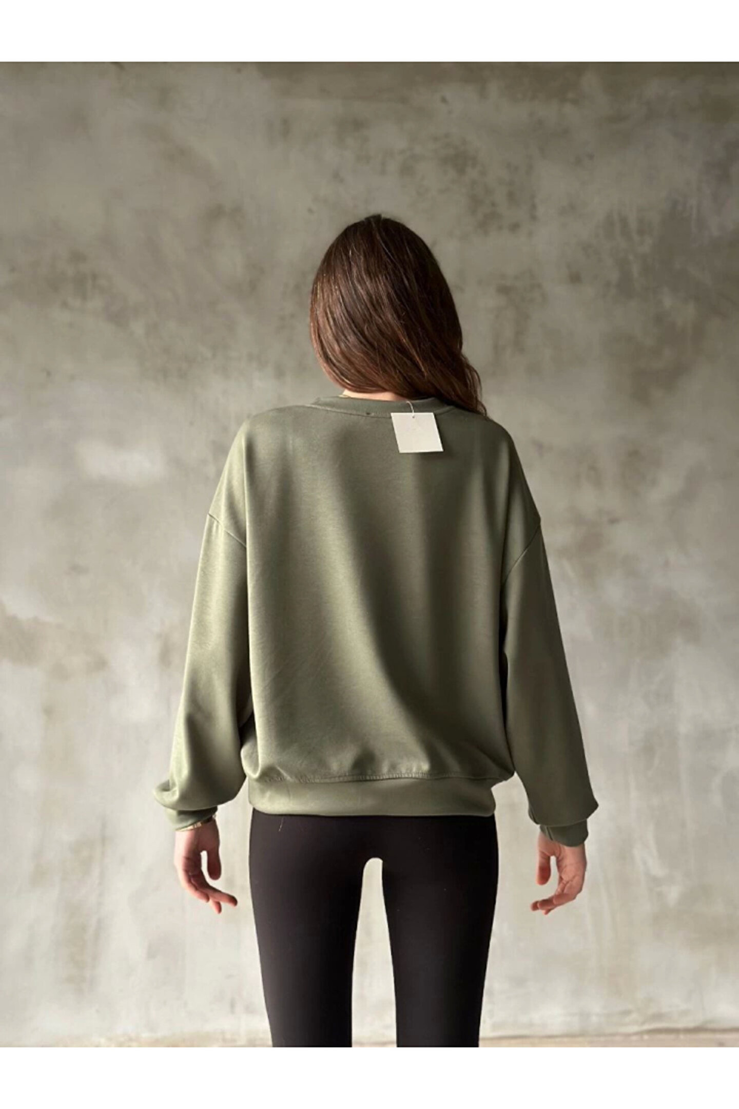 Osy Modal Yumuşak Dokulu Kumaş Bisiklet Yaka Oversize Sweatshirt - Haki