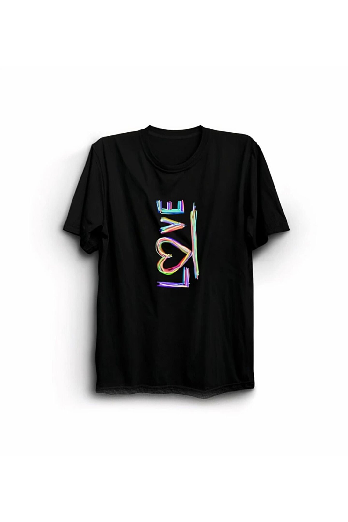 Silerra eyesof Sevgililer Günü İçin Özel Tasarım Leopar Kalp Baskılı T-shirt - Siyah