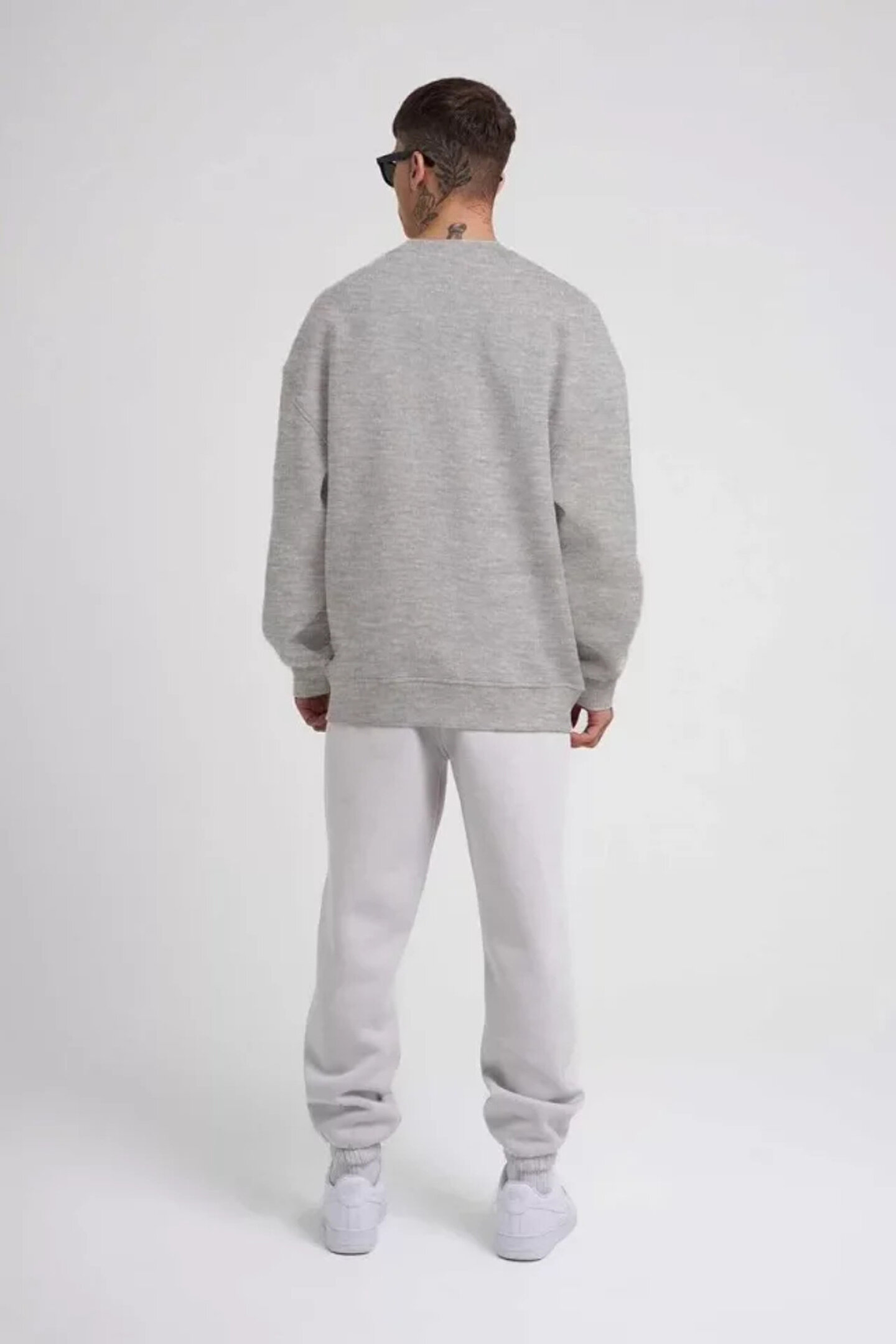 Unisex Biskilet Yaka Üç İplik SweatShirt - Gri