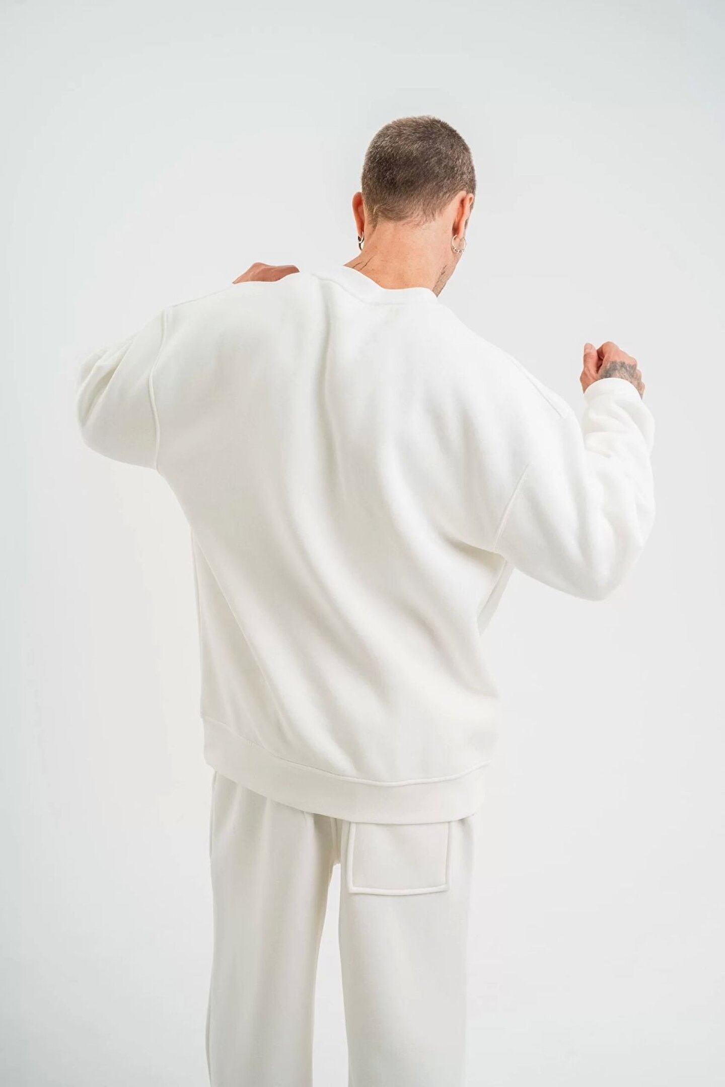 Uzun Kol Bisiklet Yaka Basic SweatShirt - Beyaz