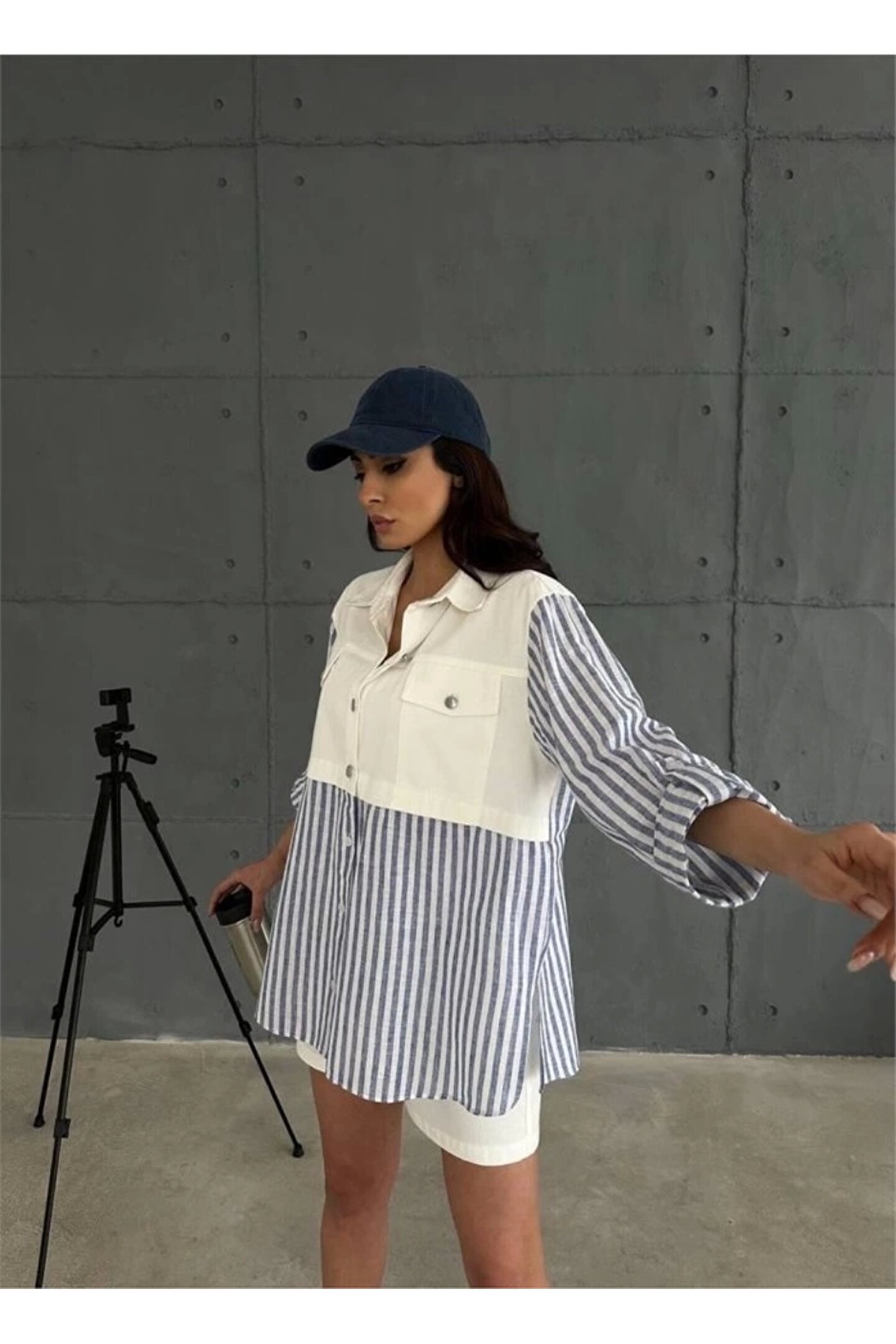 GABARDİN ŞORT - GABARDİN - ÇİZGİLİ KETEN GARNİLİ CEKET TAKIM - Lacivert