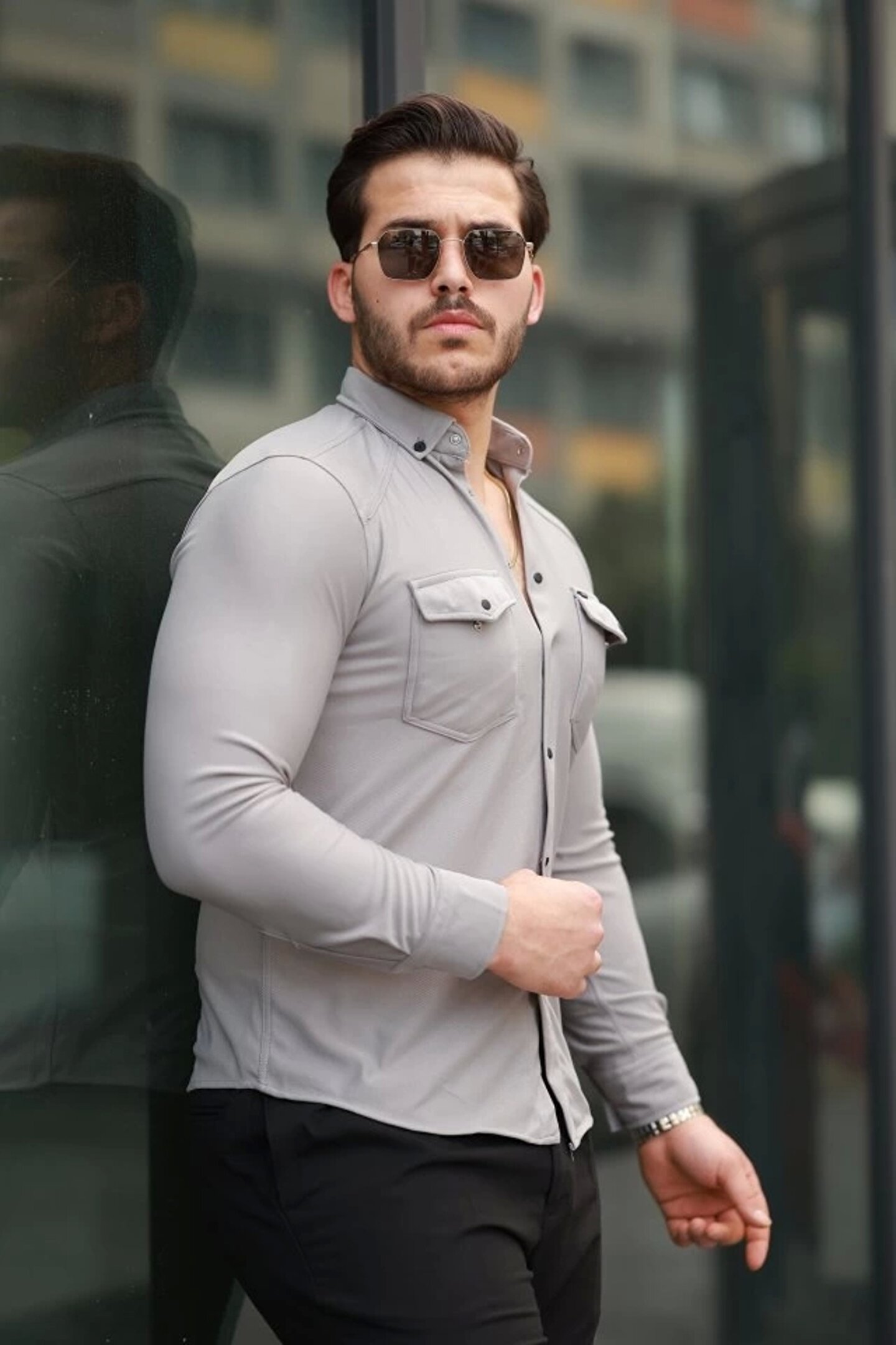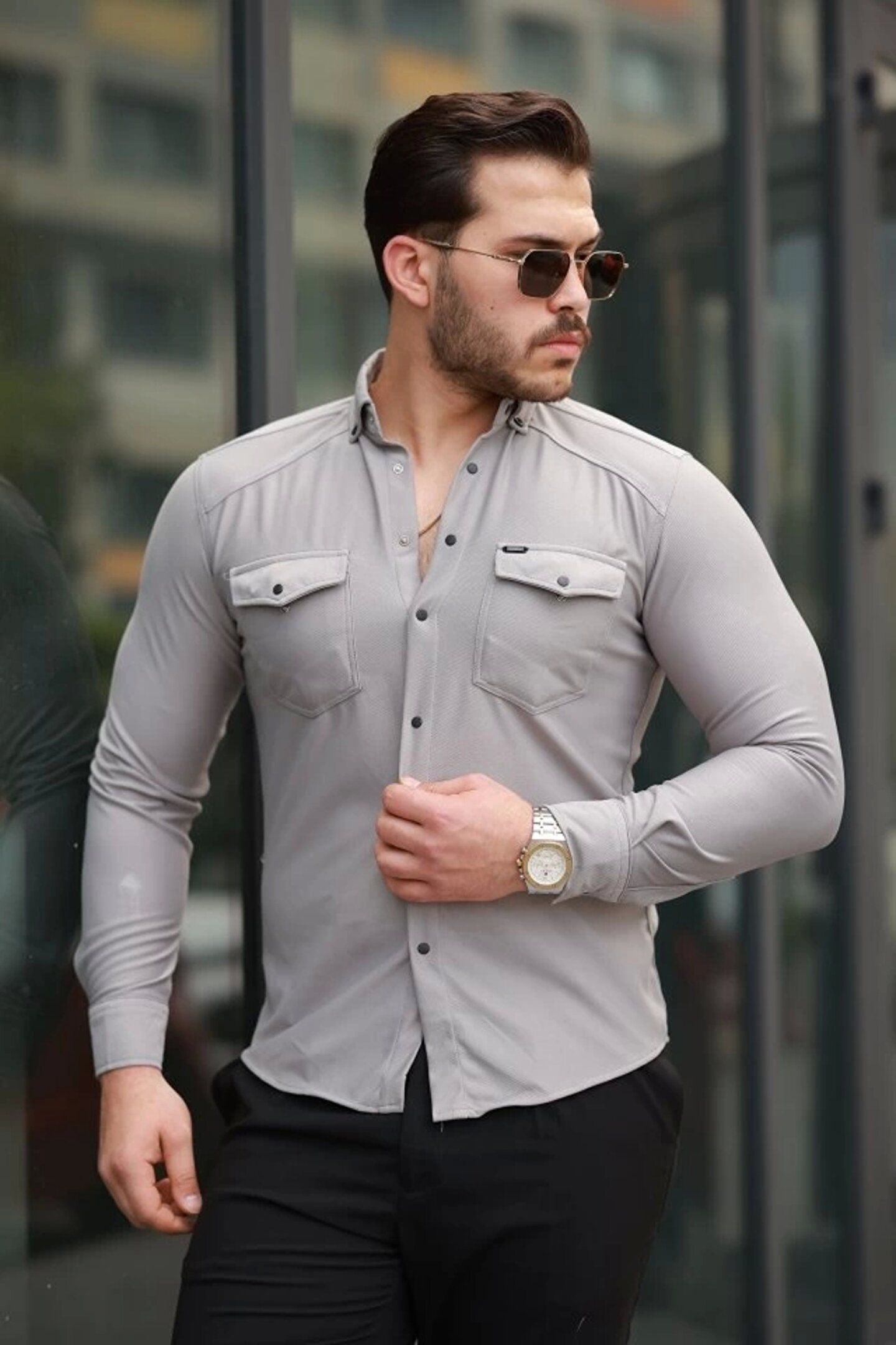 Silerra GACHA Erkek çift Cepli çıtçıt Düğmeli Uzun Kollu Gömlek