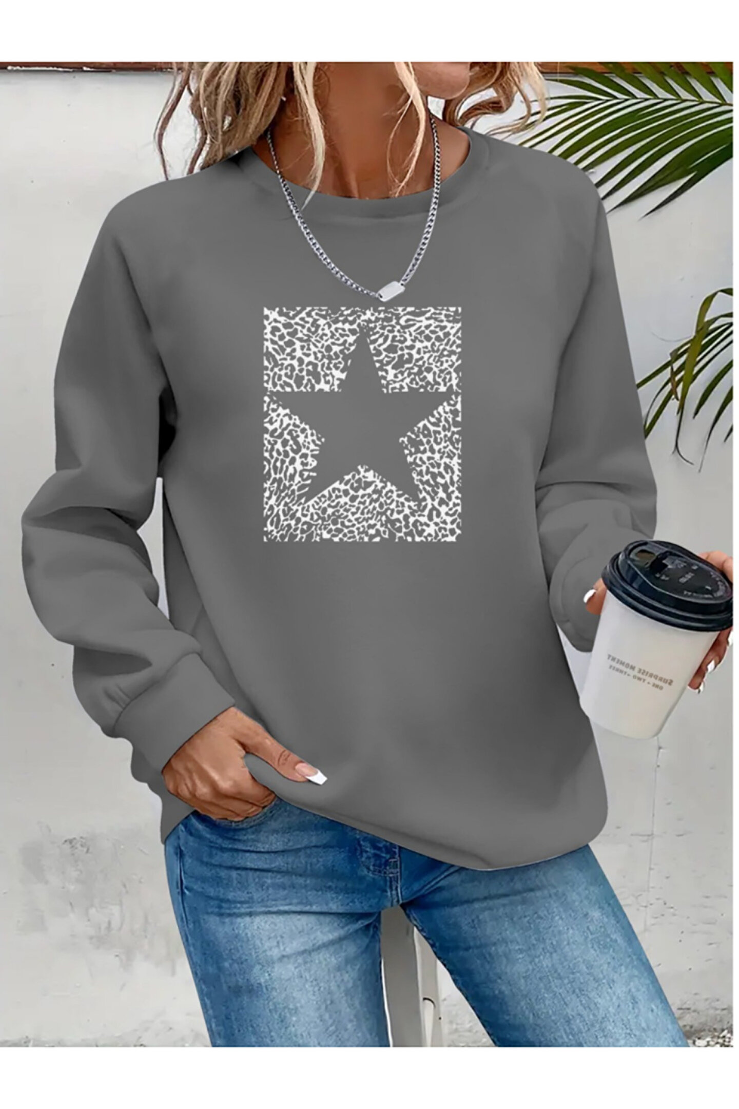 Silerra Gökyüzü Moda Kadın Uzun Kollu Bisiklet Yaka Desenli Viskon Iki Iplik Bluz