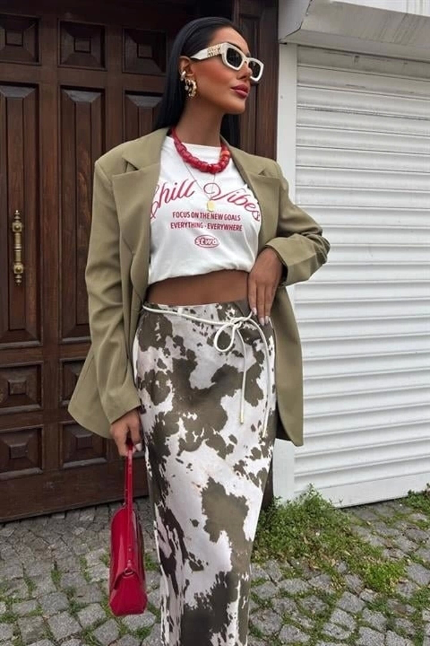 Silerra İnce Deri Kemerli Chanel Saten Etek 4050