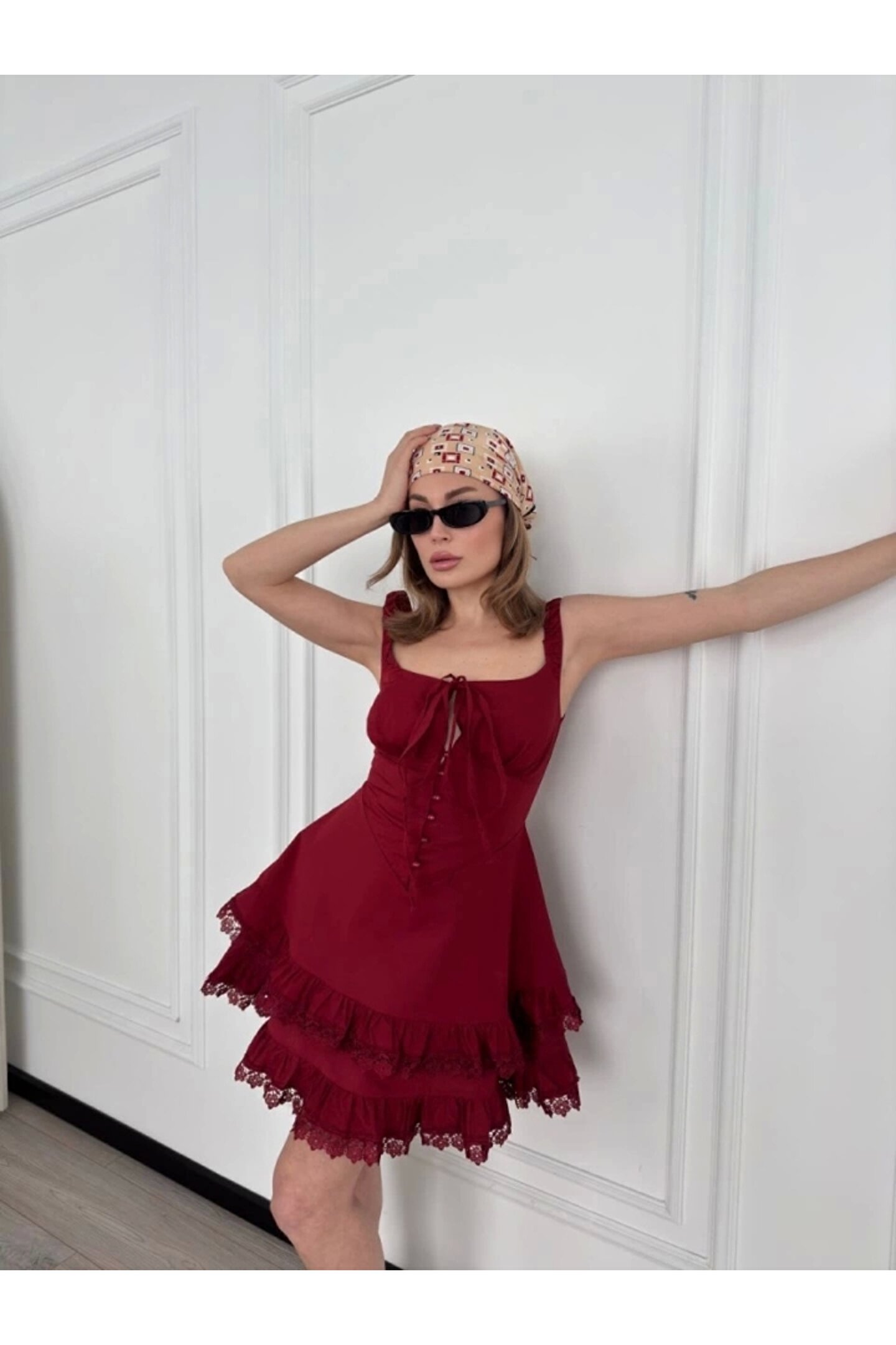 Mini Askılı Elbise - Bordo