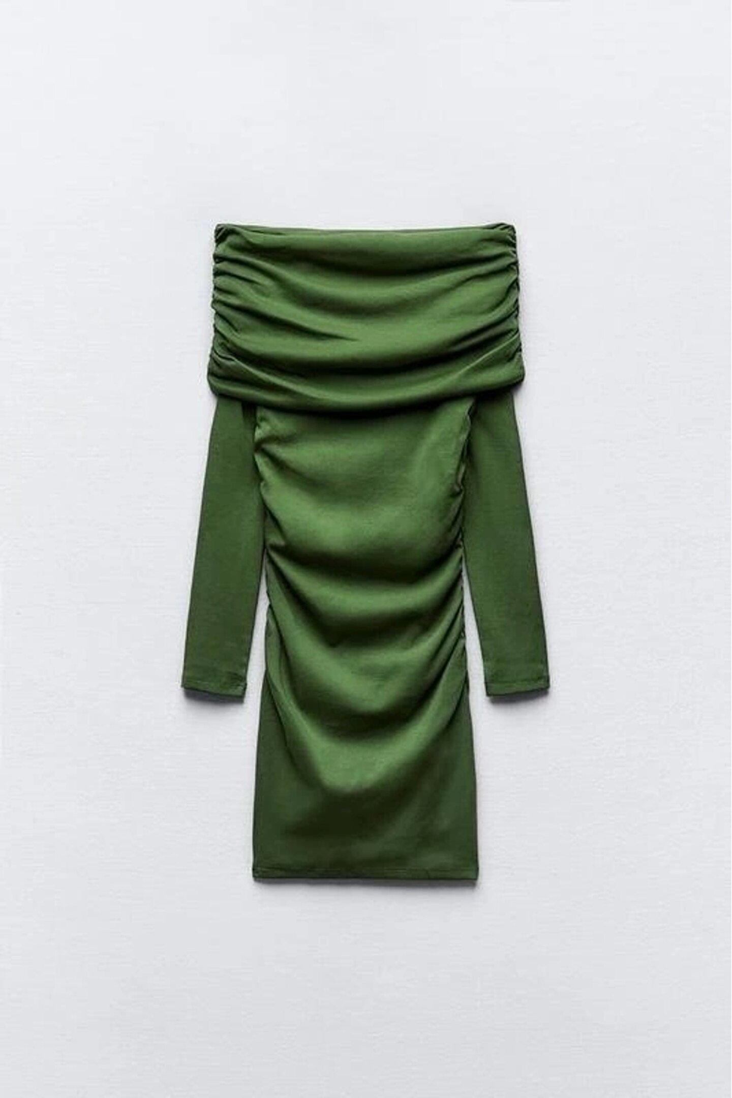 Kadın Madonna Mendil Yaka Fırsat ürün Büzgülü Mini Elbise