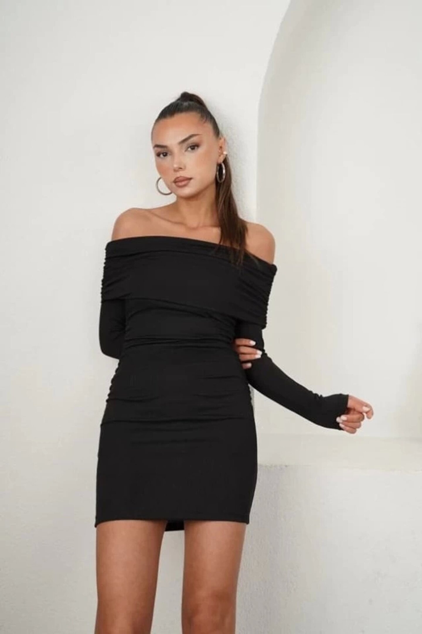Kadın Madonna Mendil Yaka Fırsat ürün Büzgülü Mini Elbise