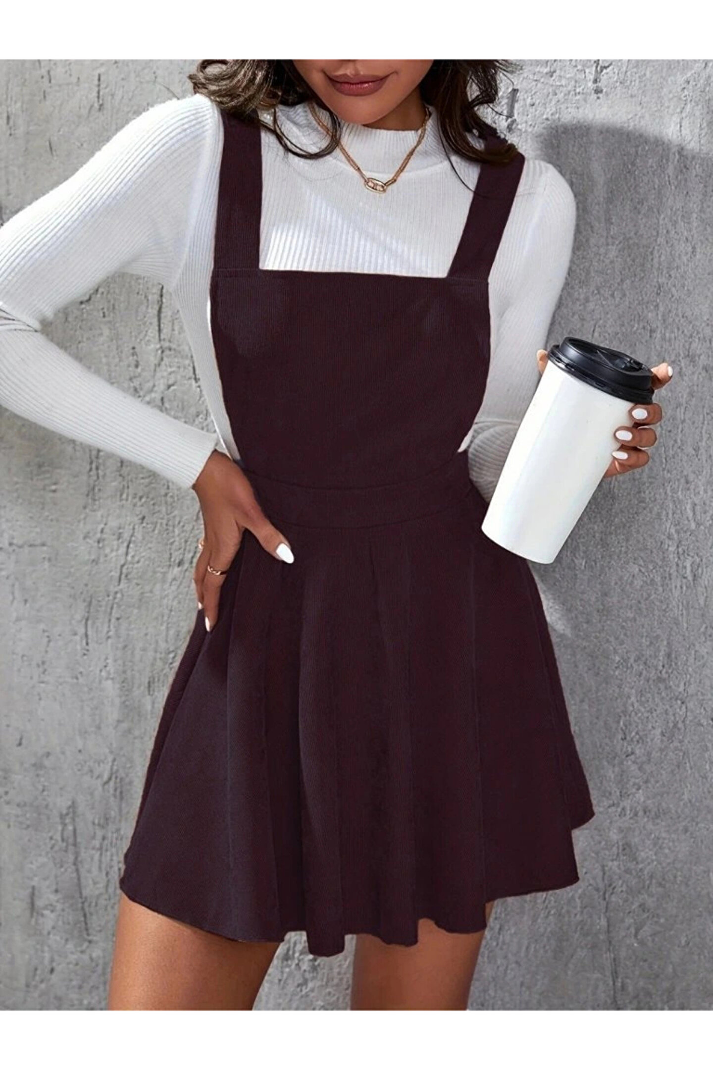Kadın Askılı Sırttan çapraz Detaylı Kısa Kiloş Kadife Mini Elbise