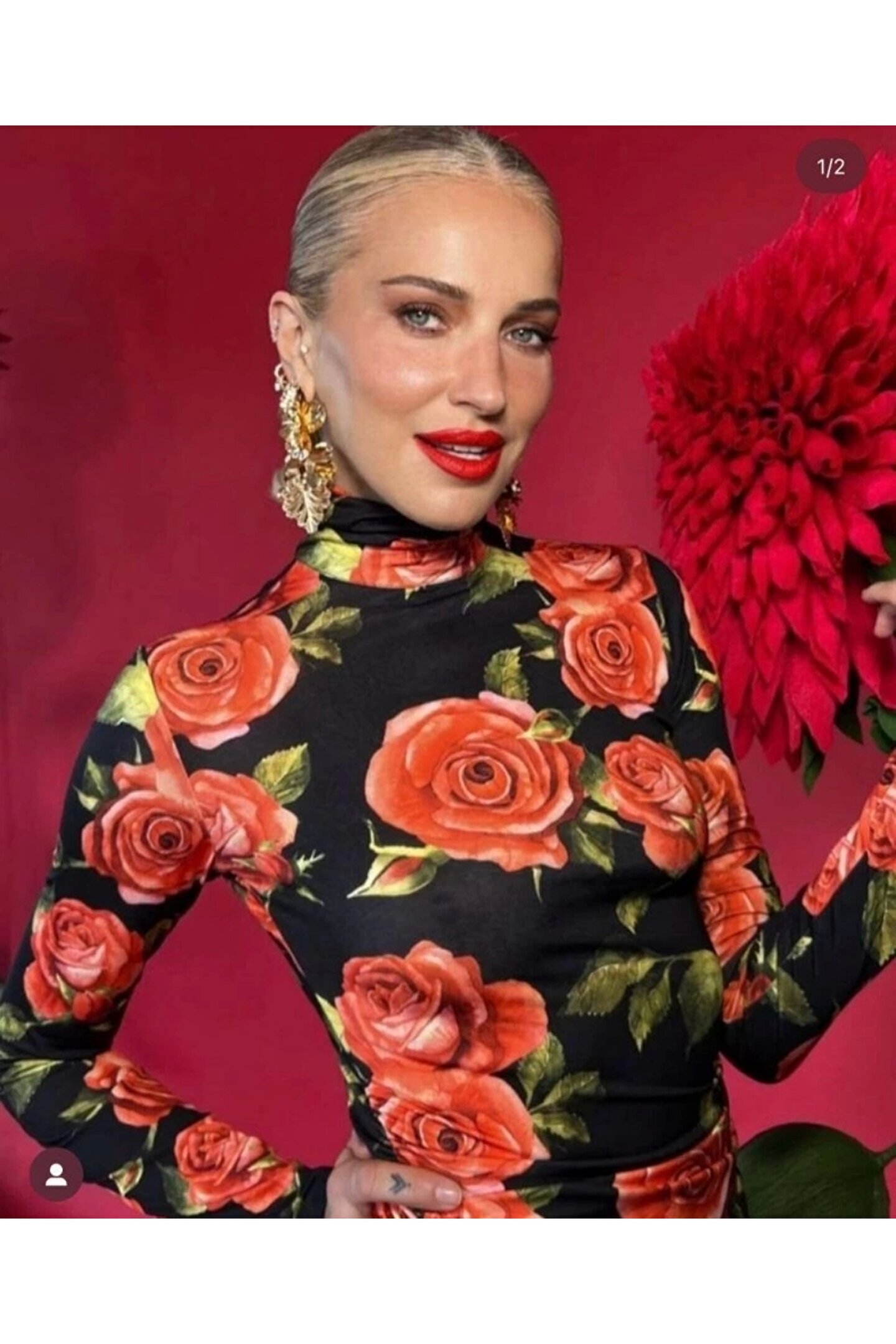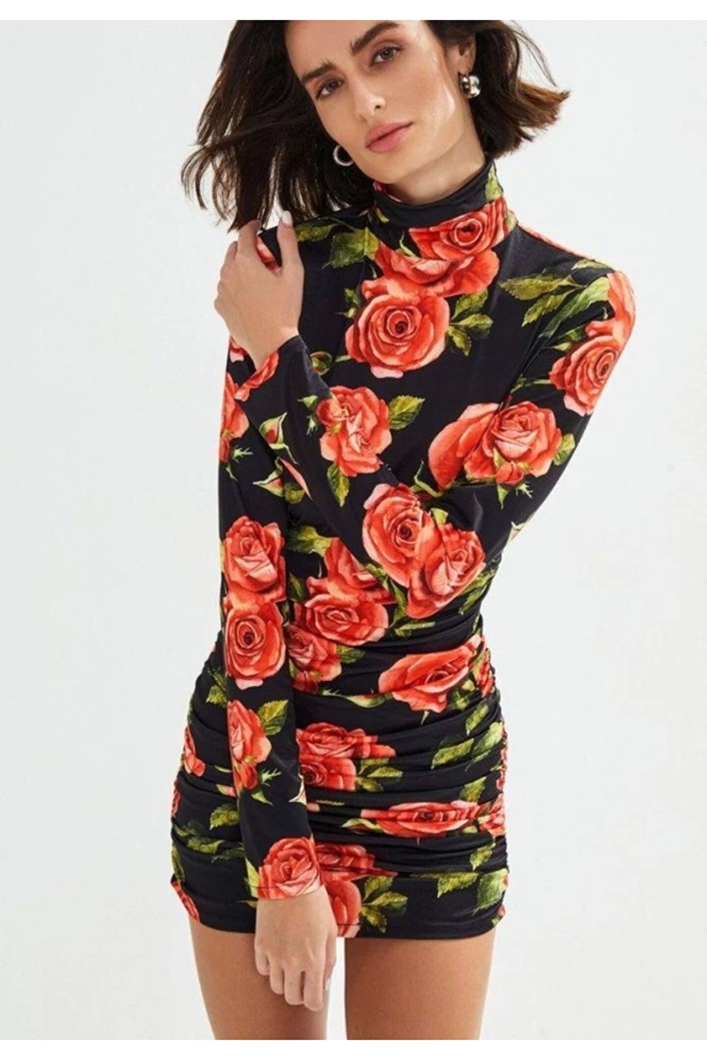 Kadın Balıkçı Yaka Gül Baskılı Fırsat ürün Mini Elbise