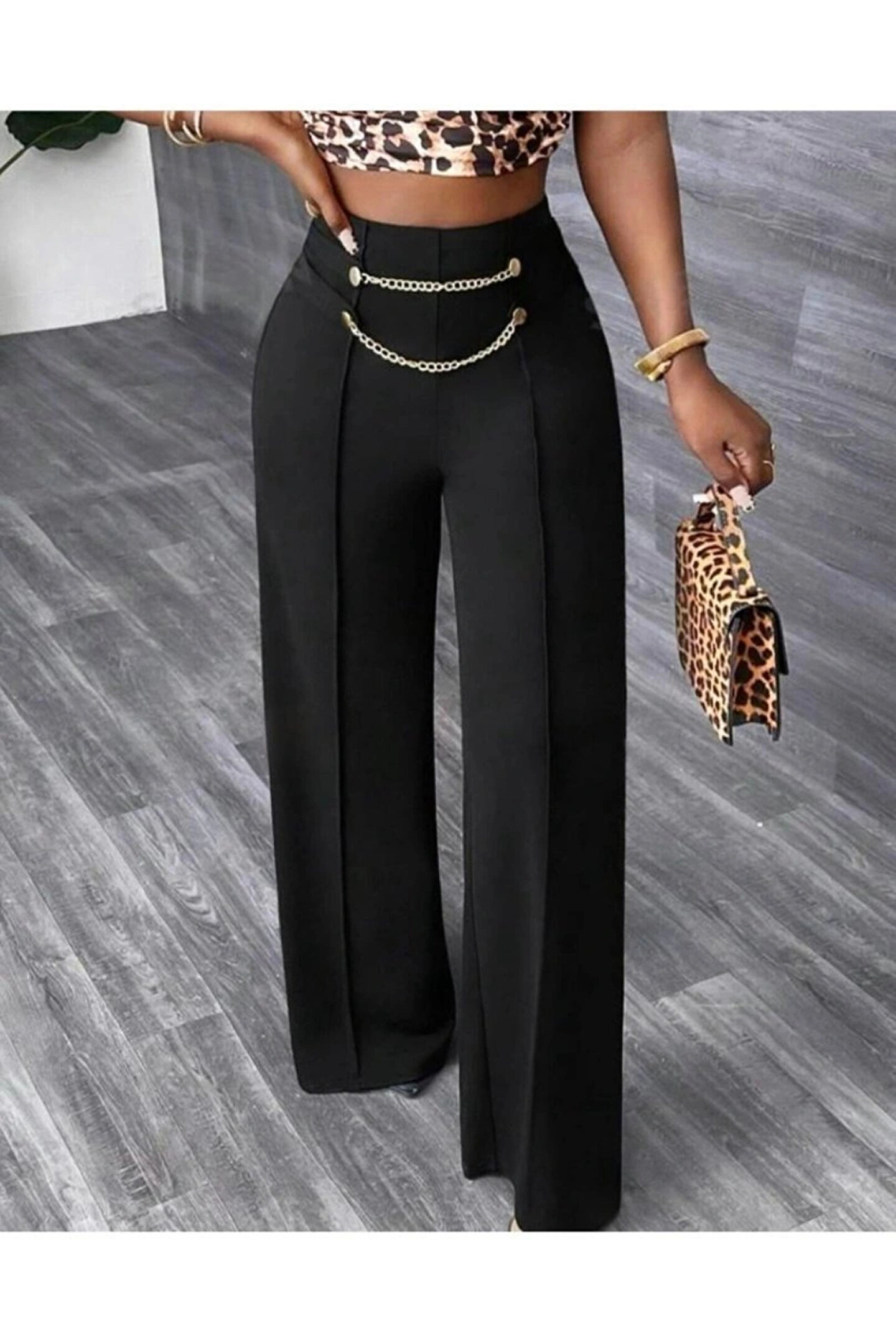 Kadın Beli Zincir Detay Ithal Krep Pantolon