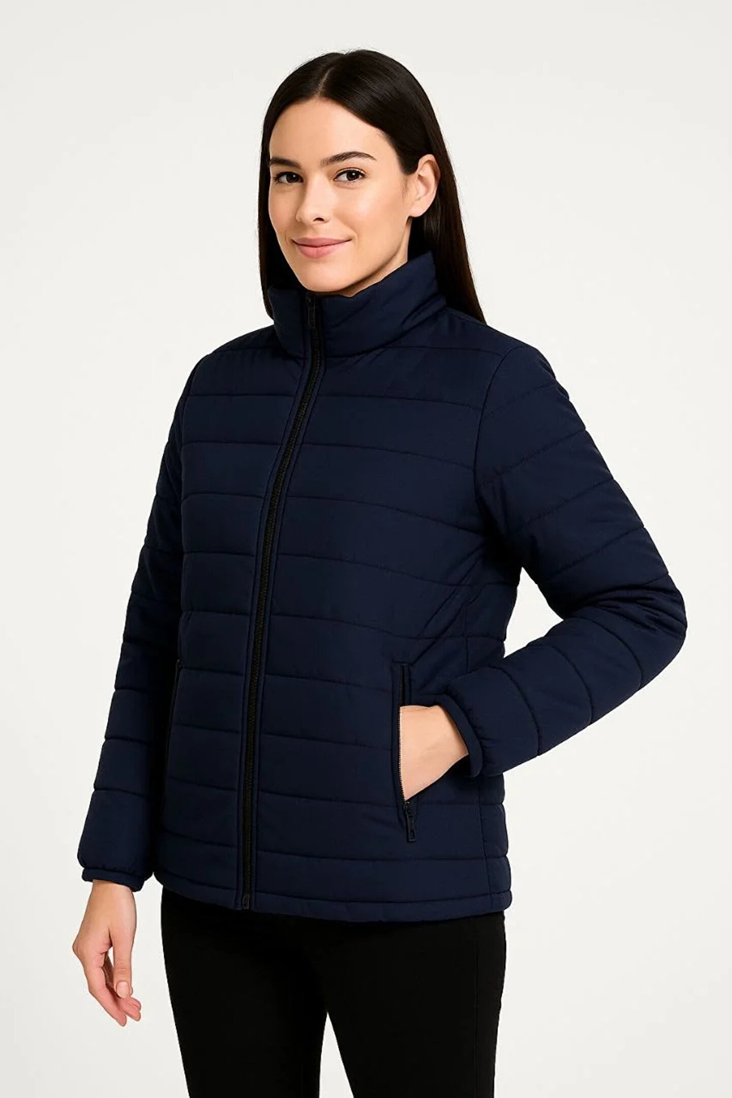 - Su itici kumaş özelliği sayesinde yağmur ve kar gibi hava koşullarına karşı koruma sağlar.; - Kapitone astarlı yapısı ile soğuk havalarda ekstra sıcaklık ve konfor sunar.; - Fermuarlı tasarımı kolay giyilip çıkartılmasını ve pratik kullanım imkanı sağlar.; - Lacivert rengi ve çok renkli detayları ile şık bir görünüm kazandırır.; - Ceket yaka tasarımı, modern ve zamansız bir stil sunar.; - Bomber silueti ile rahat hareket edebilme özgürlüğü verir.; - Casual ortamlarda günlük kullanım için idealdir; hem rahat hem de şık bir görünüm sağlar.; - Uzun kol tasarımı, kolların tamamını sıcak tutarak soğuk havalarda konfor sunar.; - Standart boy kesimiyle farklı vücut tiplerine uyum sağlar.; - Astarlı yapısı, montun iç kısmının daha dayanıklı olmasını ve formunu korumasını sağlar.; - Kapitone dokuma tipi ile hafif ama dayanıklı bir yapıya sahiptir.; - Yetişkin kadınlar için özel