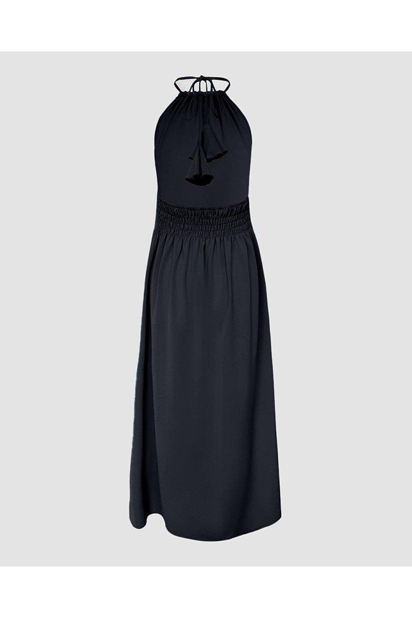 Silerra Kadın Boyundan Askılı Halter Kollu Viskon Elbise