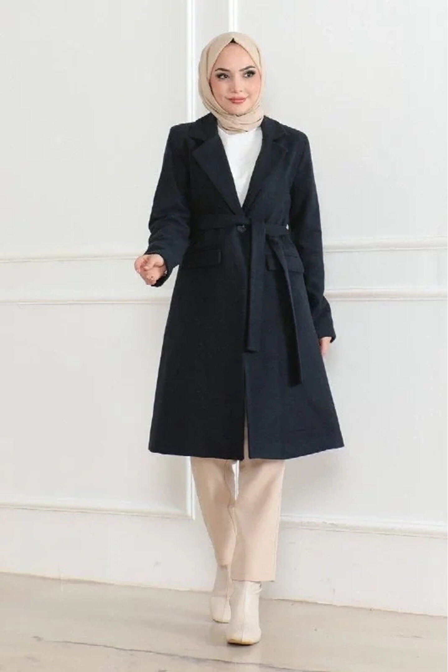 Ürün açıklaması Kış aylarında şıklığı ve sıcaklığı bir arada sunan bu uzun boy kaşe kaban, içi astarlı yapısıyla ekstra konfor sağlarken düğmeli tasarımıyla da modern bir görünüm sunar. %95 kaşe ve %5 akrilik kumaş karışımı ile dayanıklı ve sıcak tutan bu kaban, tesettür giyime uygun olarak tasarlanmıştır. Kruvaze yaka ve beldeki ayarlanabilir kuşak detayı ile vücut hatlarını zarifçe öne çıkarırken, öndeki düğme detayları sayesinde klasik bir şıklık katar. Geniş koleksiyon seçenekleriyle hem günlük hem de özel gün kombinlerinizi tamamlayacak bu kaban, kış gardırobunuzun vazgeçilmezi olacak.