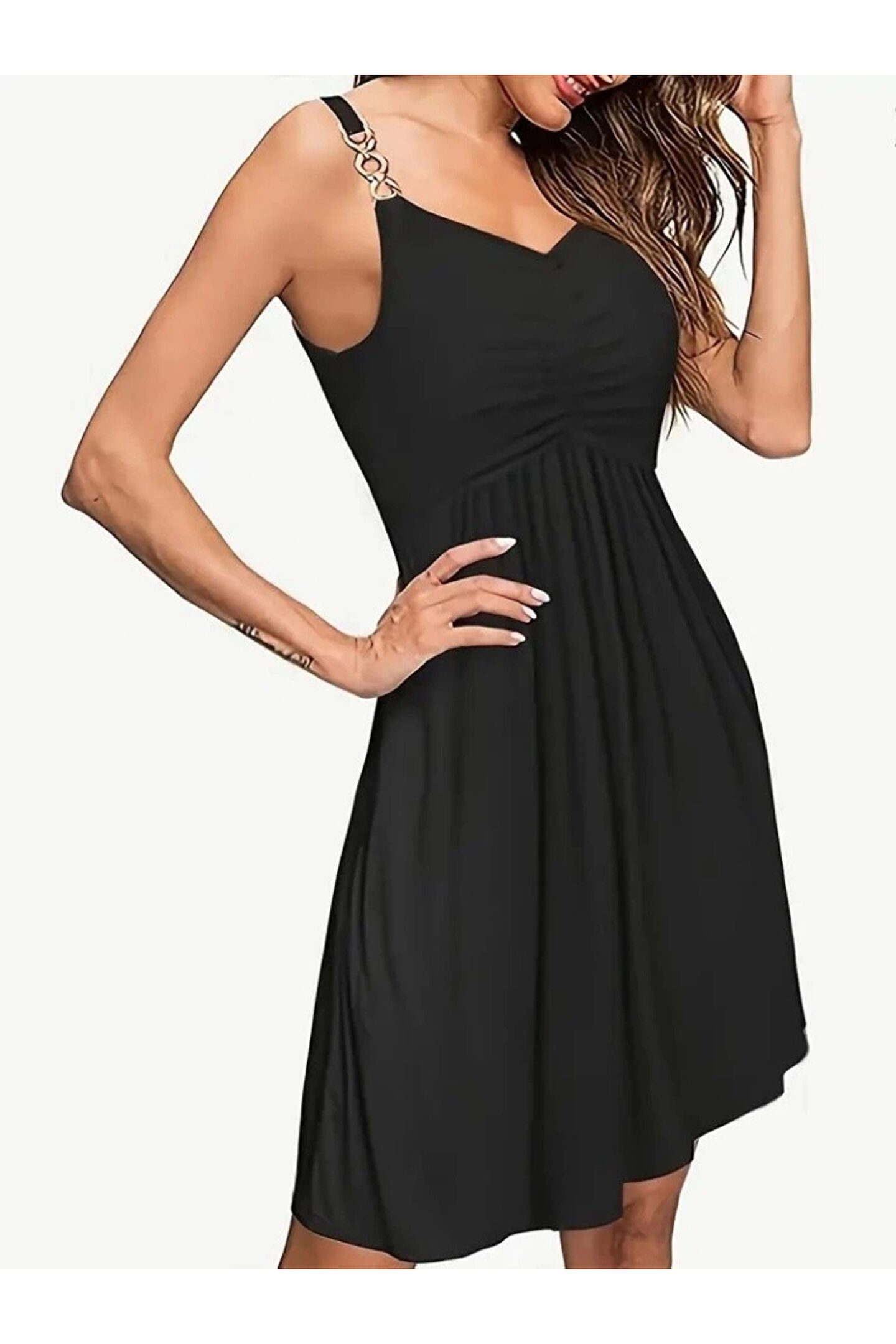 Silerra Kadın Ip Askılı V Yakalı Kısa Viskon Elbise