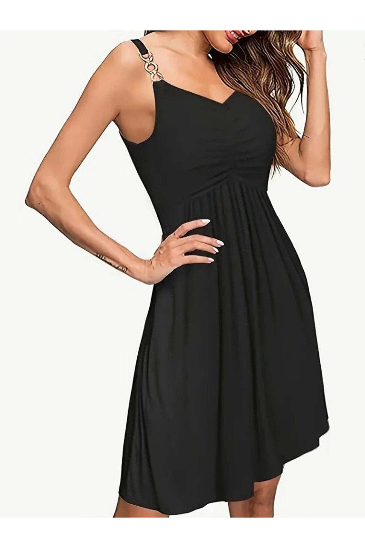 Kadın Ip Askılı V Yakalı Kısa Viskon Elbise