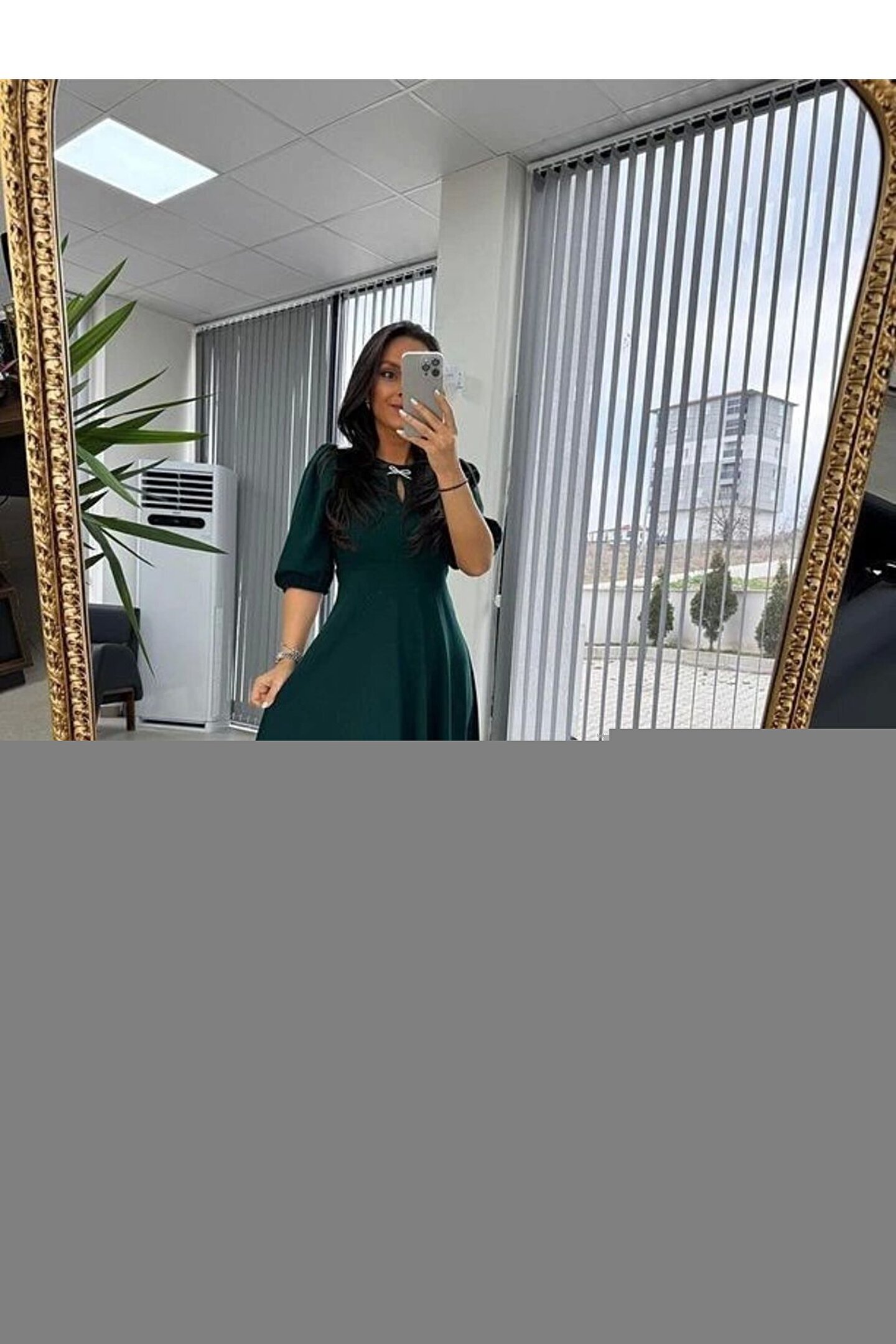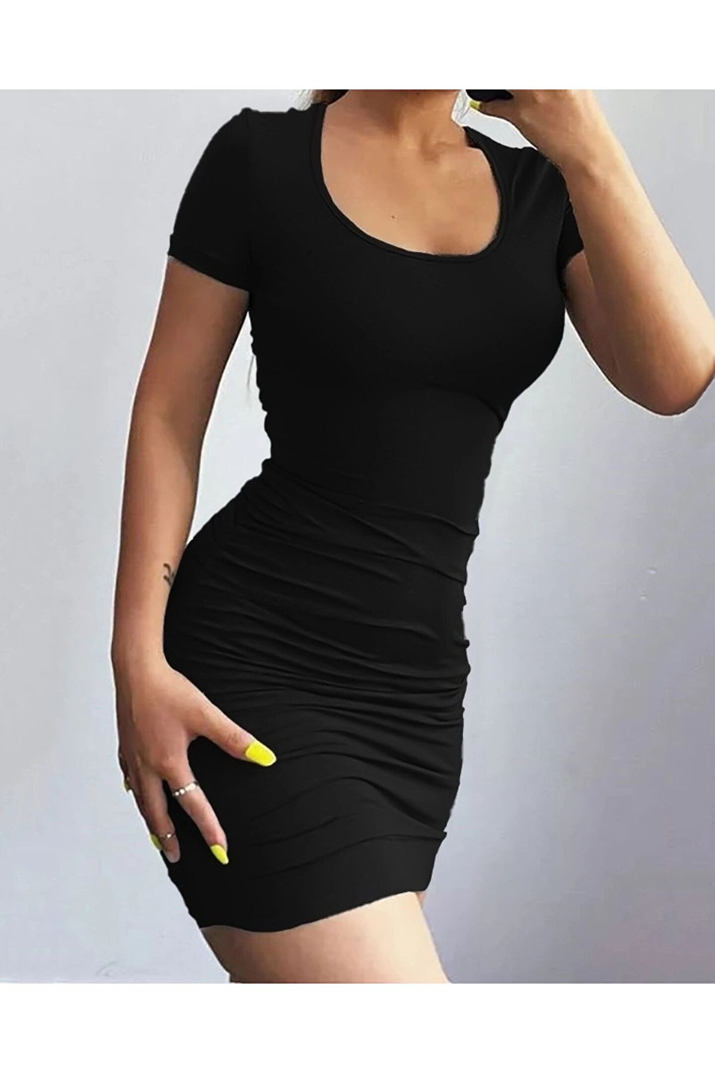 Silerra Kadın Kısa Kollu Bel çapraz Detay Dekolteli Eteği Büzgülü Sandy Mini Elbise