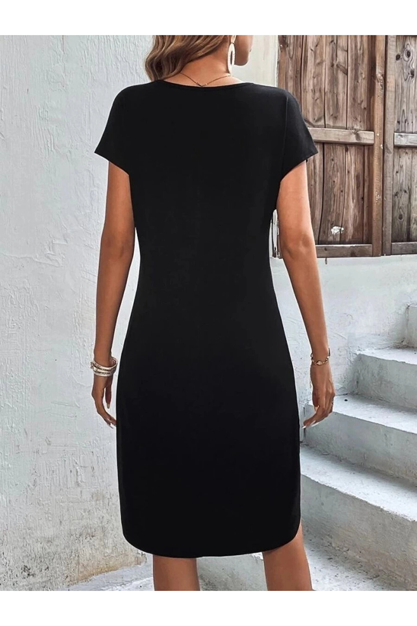 Kadın Kısa Kollu Bisiklet Yaka Viskon Iki Iplik Elbise