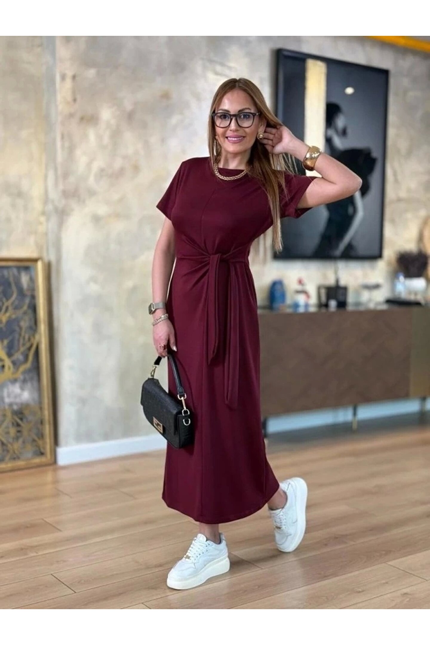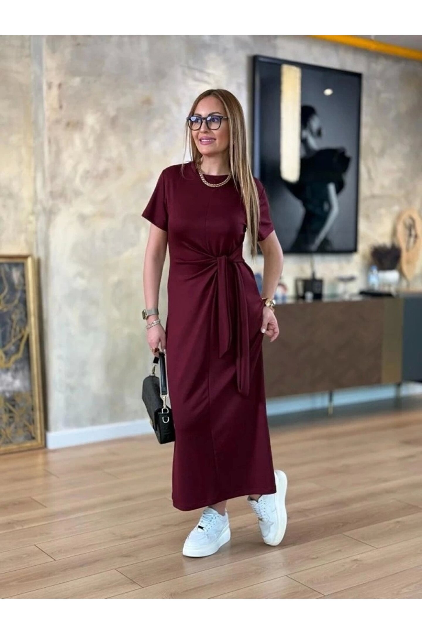 Kadın Kısa Kollu Bisiklet Yaka Yandan Bağlamalı Viskon Iki Iplik Elbise