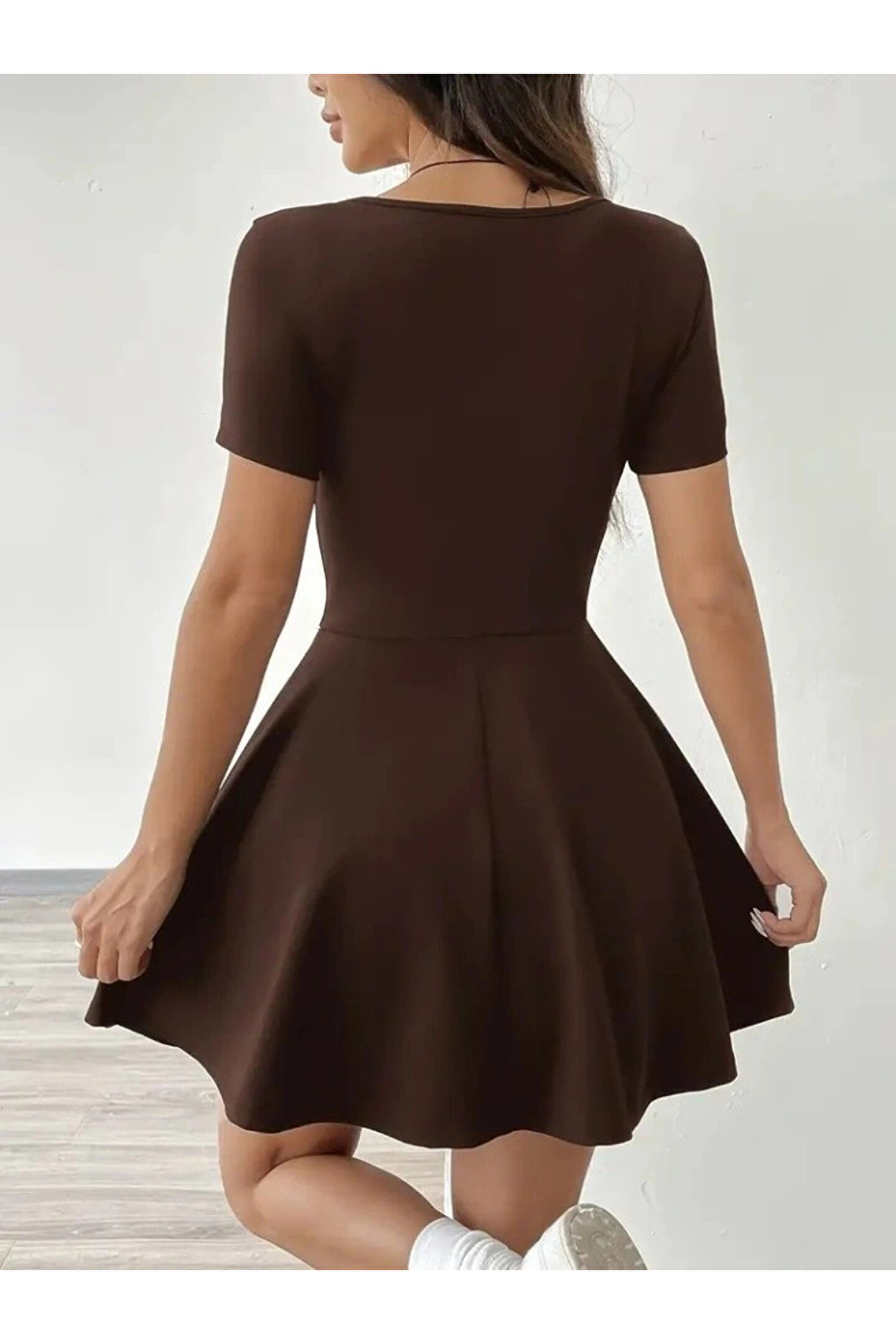 Kadın Kısa Kollu Kare Yaka Short Detaylı Cepli Dalgıç Elbise