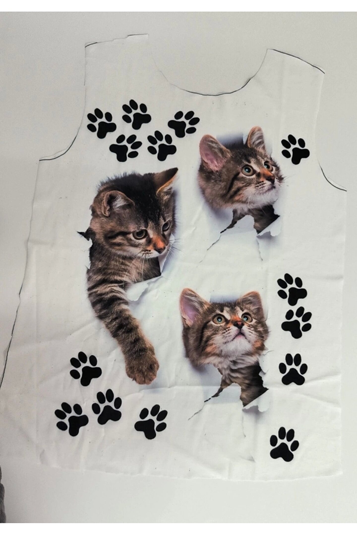 <p>Kadın Kısa Kollu Kedi Ve Pati Baskılı Süprem T-shirt</p>