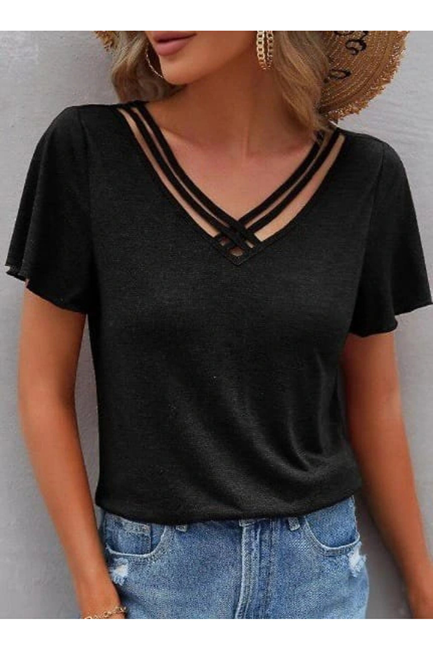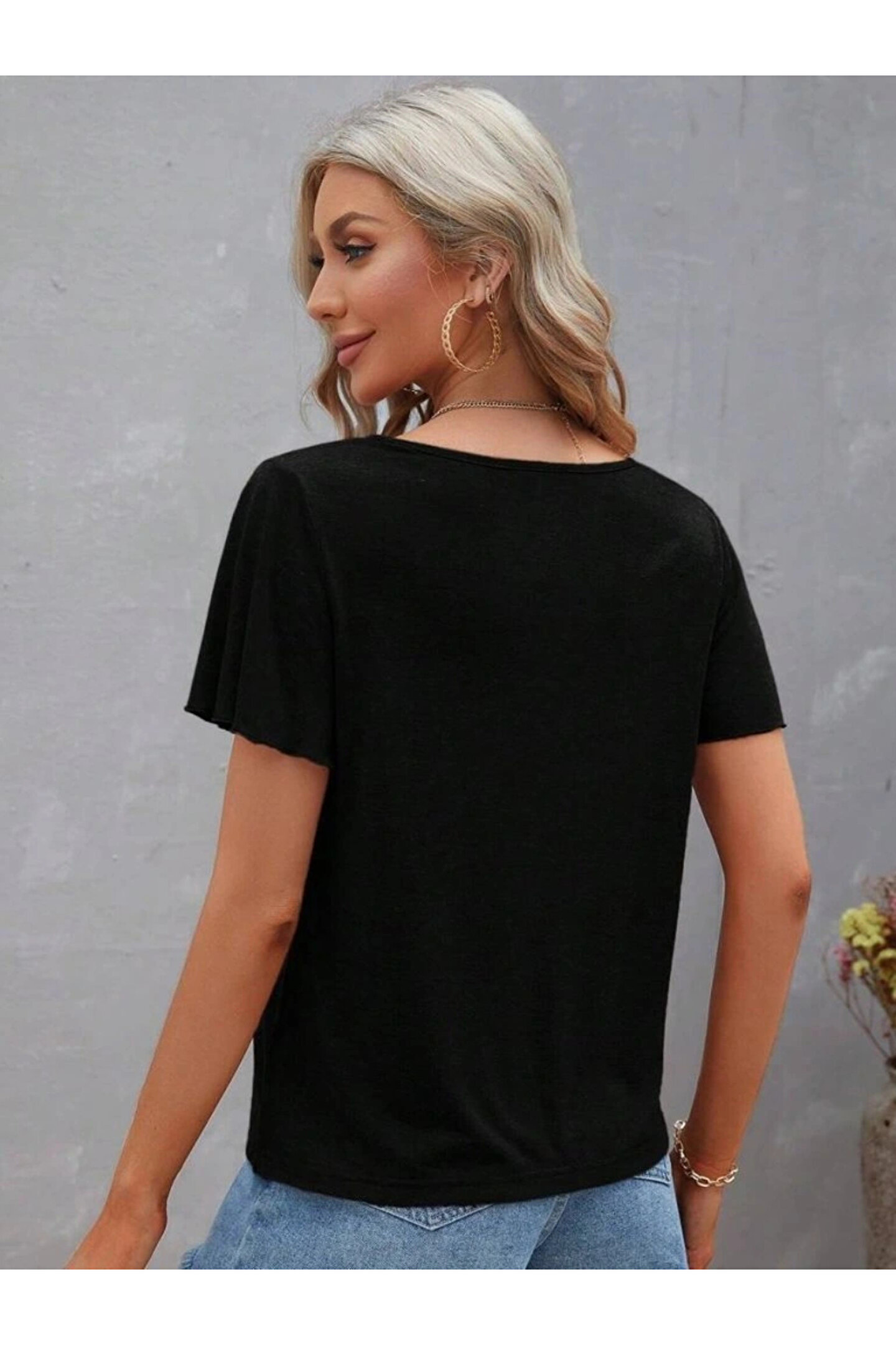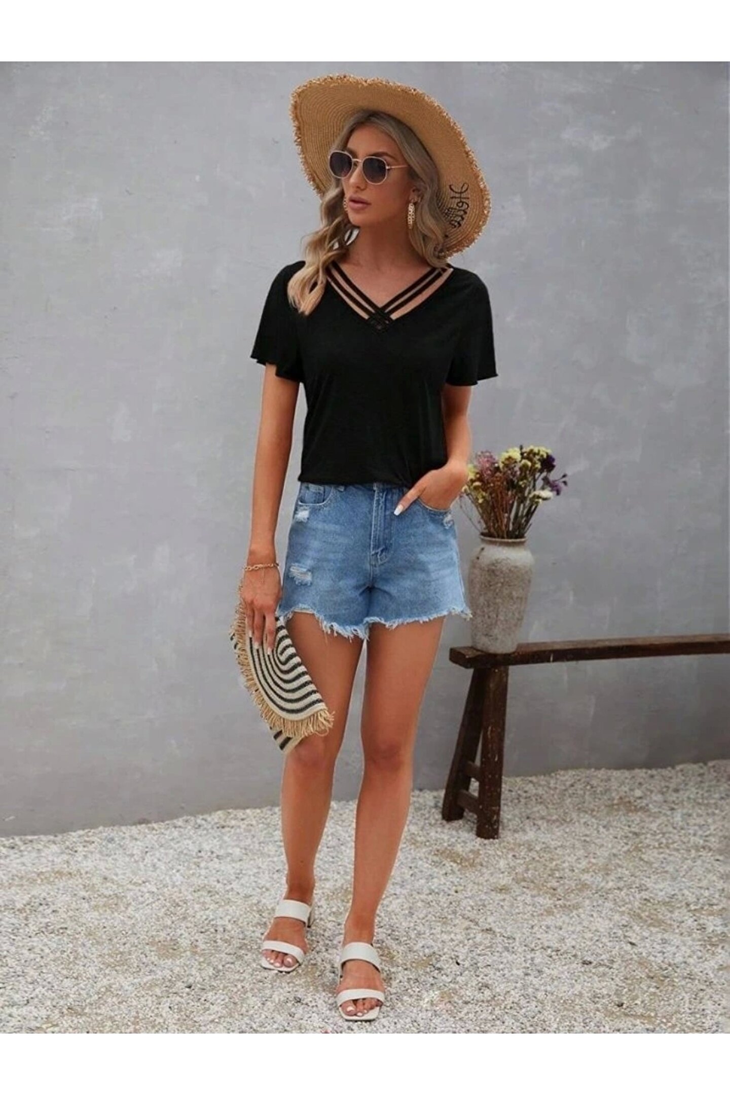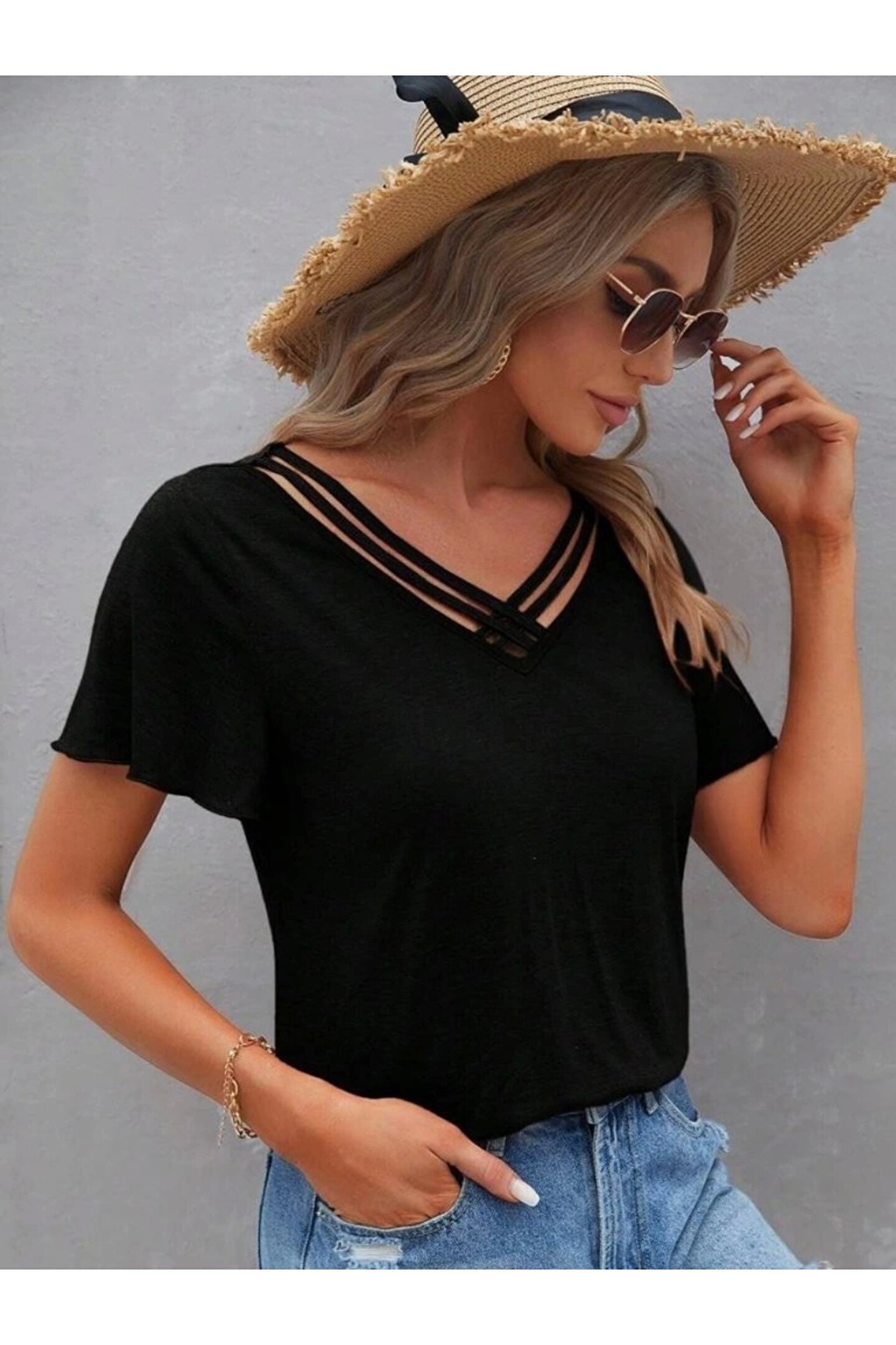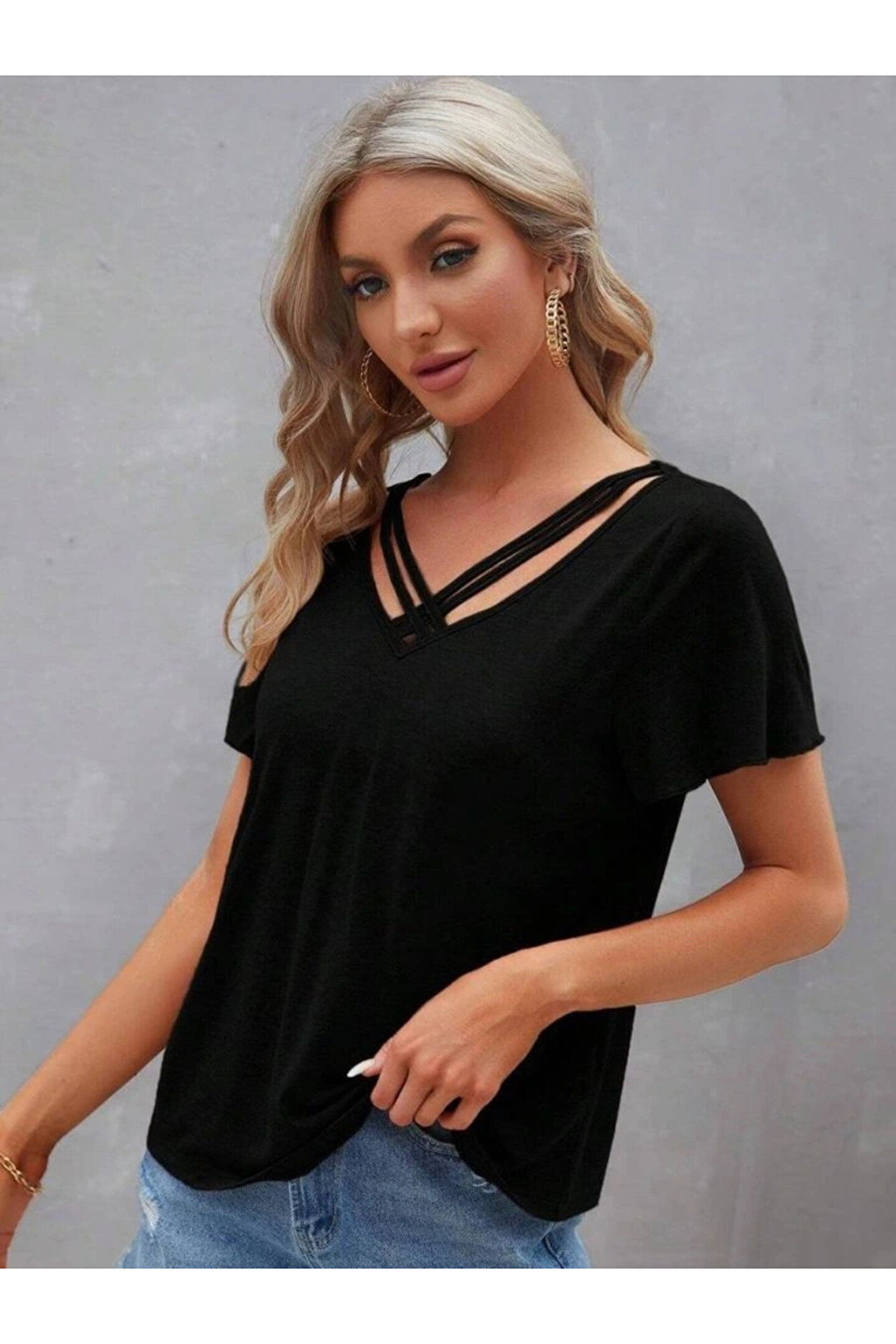 Silerra Kadın Kısa Kollu V şerit Yakalı Viskon Bluz