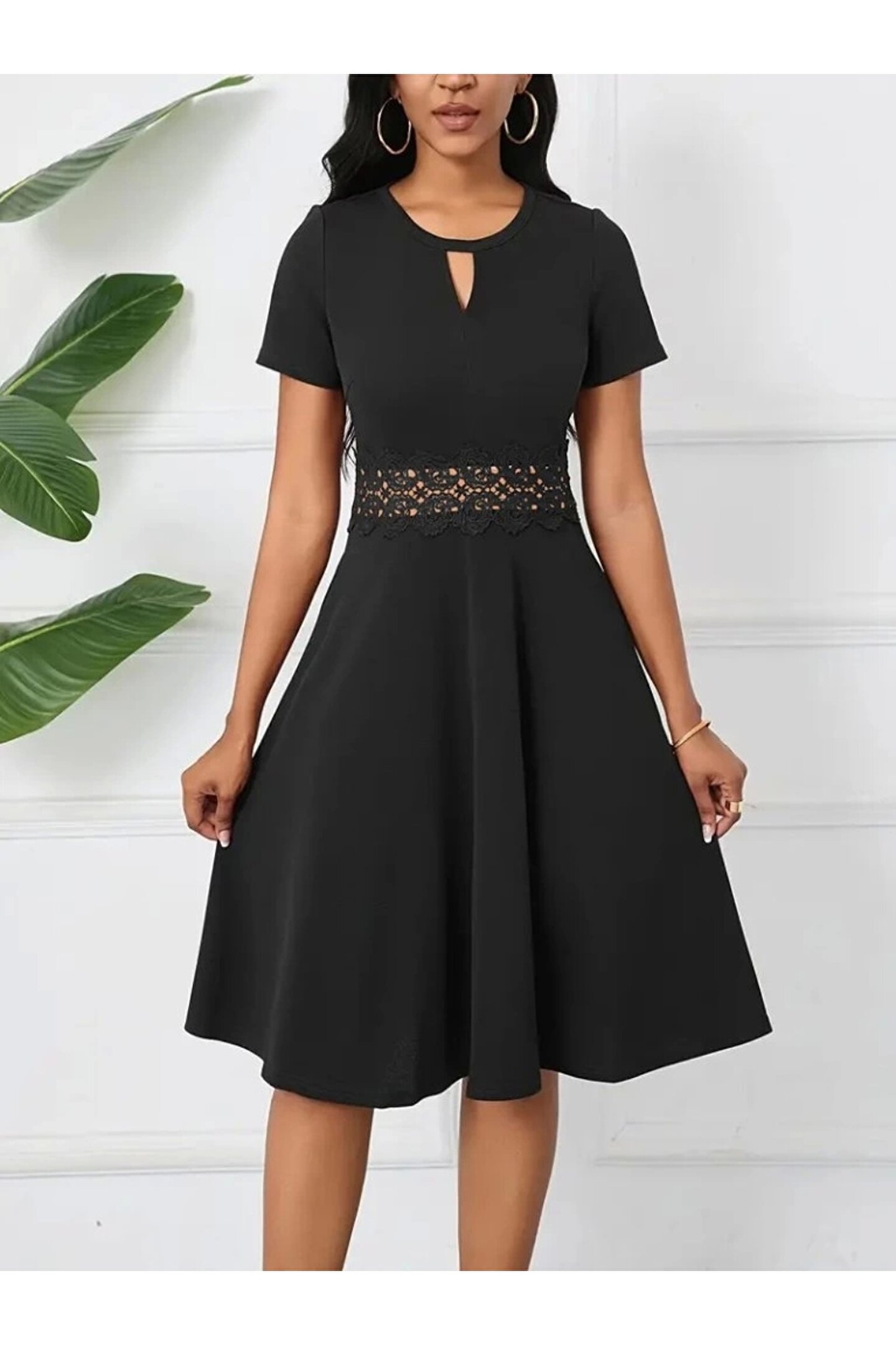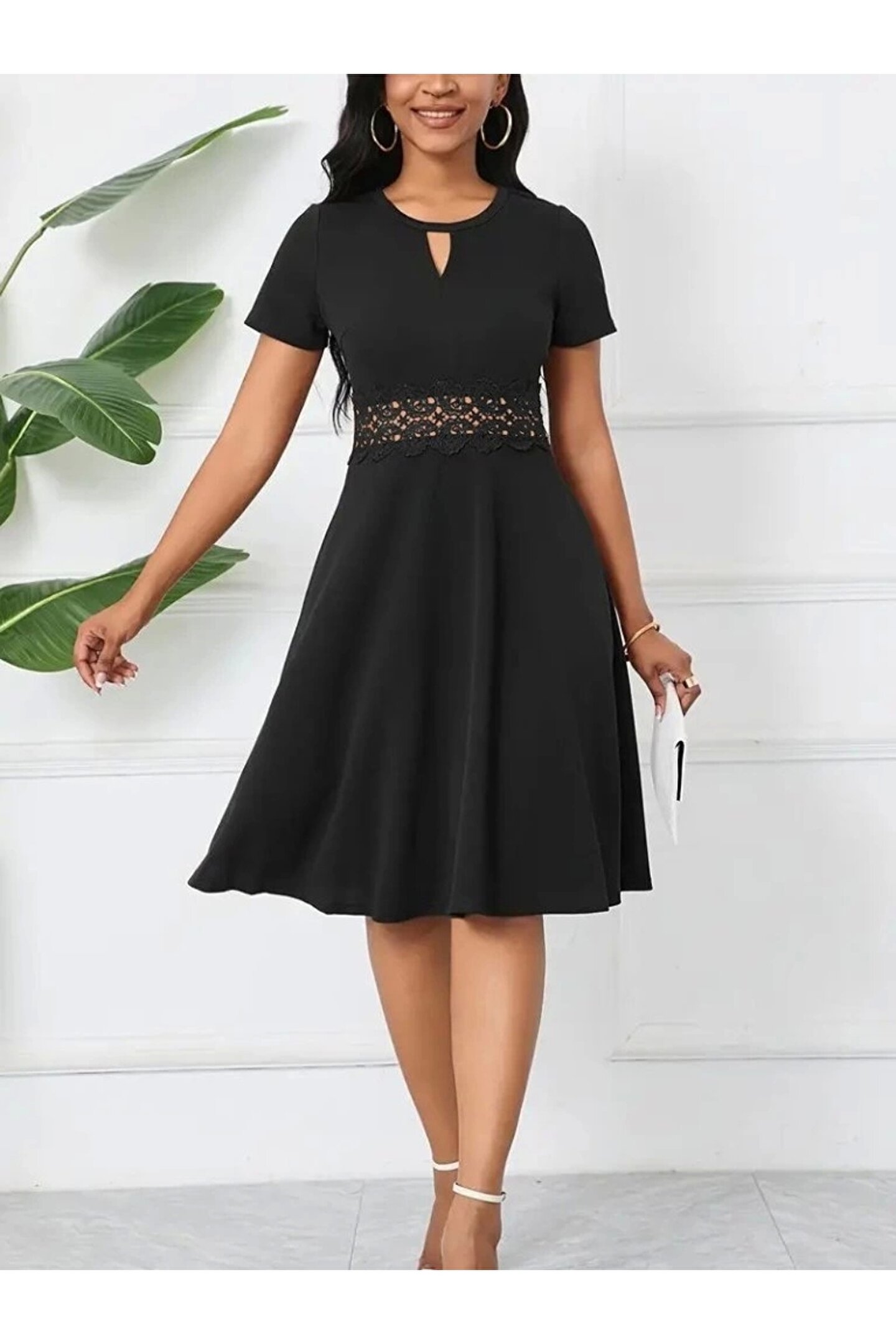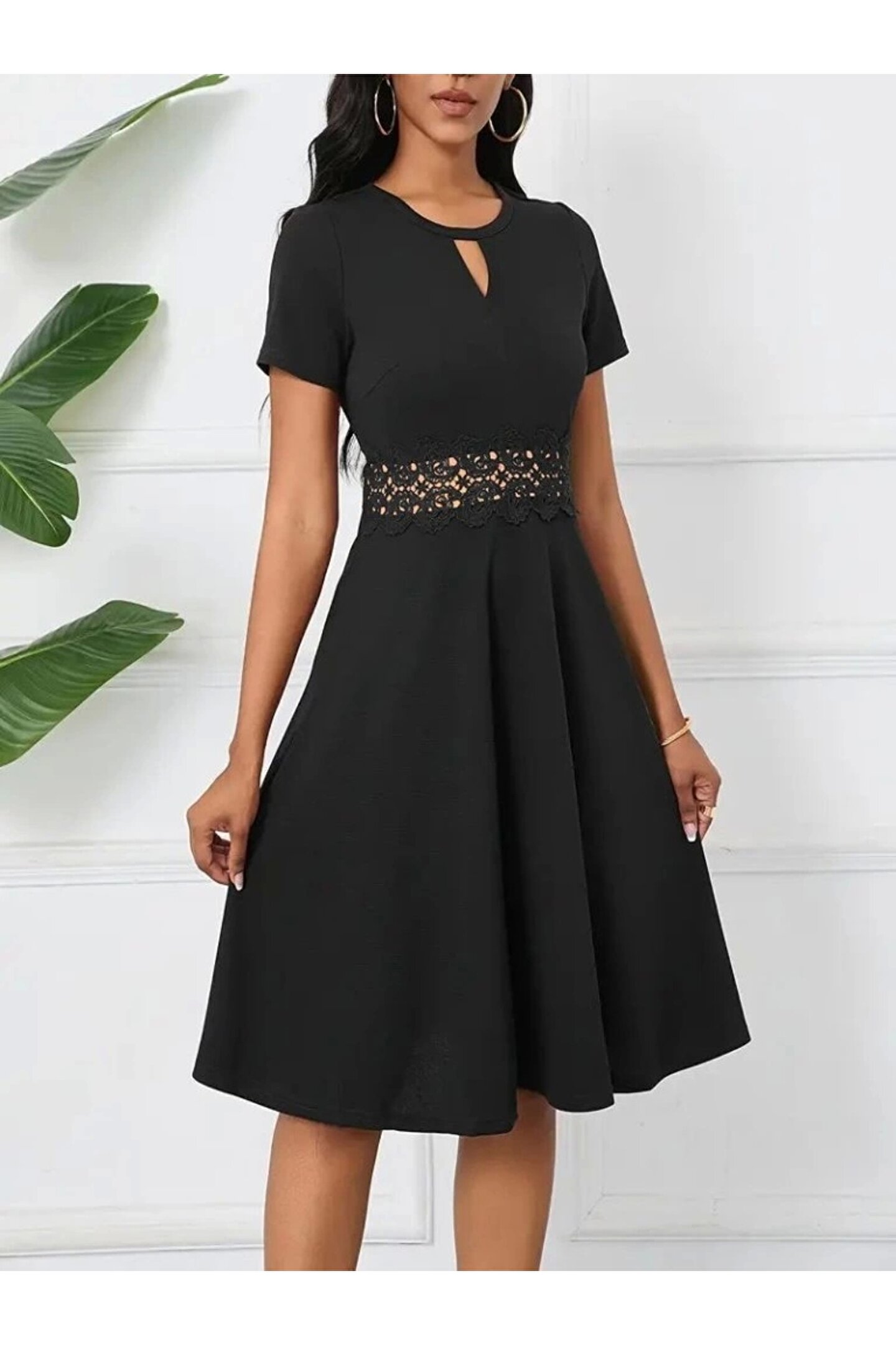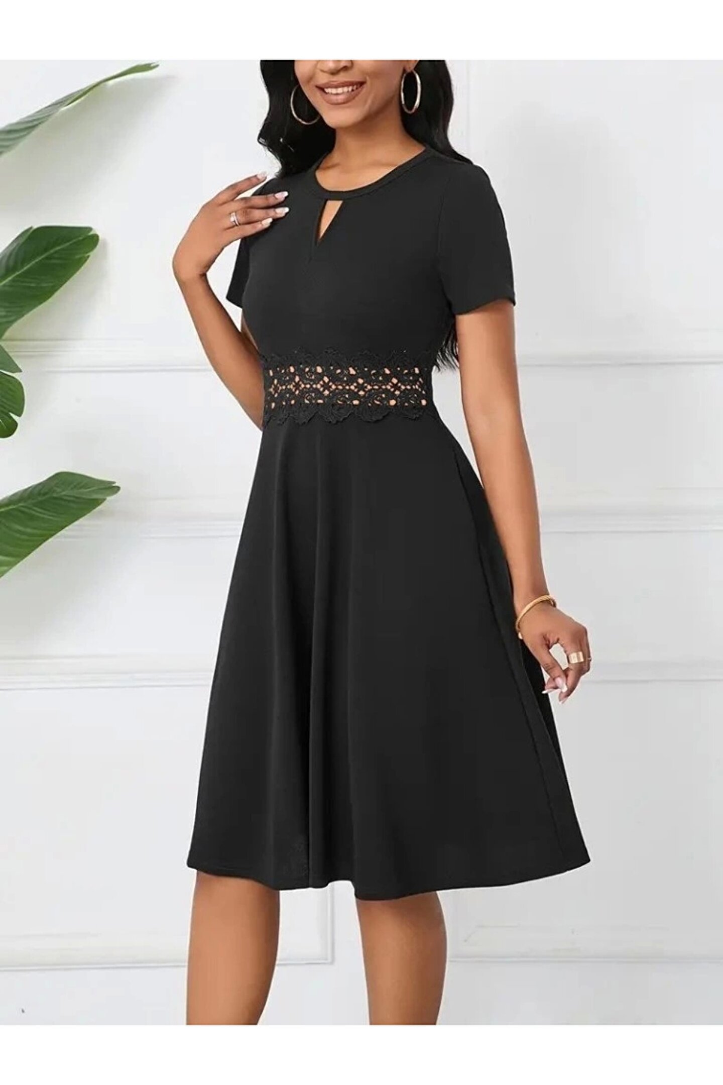 Silerra Kadın Kısa Kollu Yuvarlak Yaka Damla Detaylı Janjan Elbise