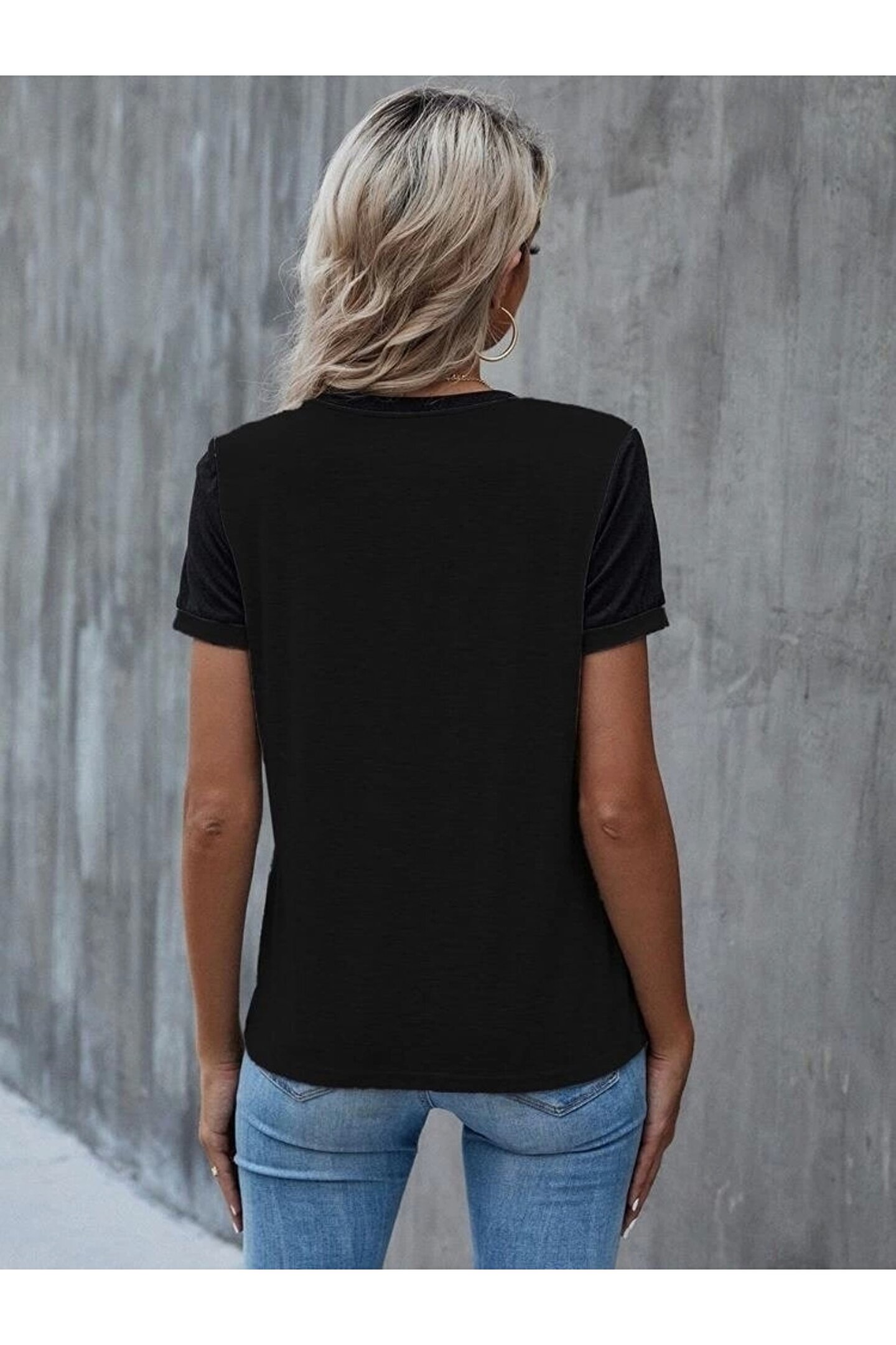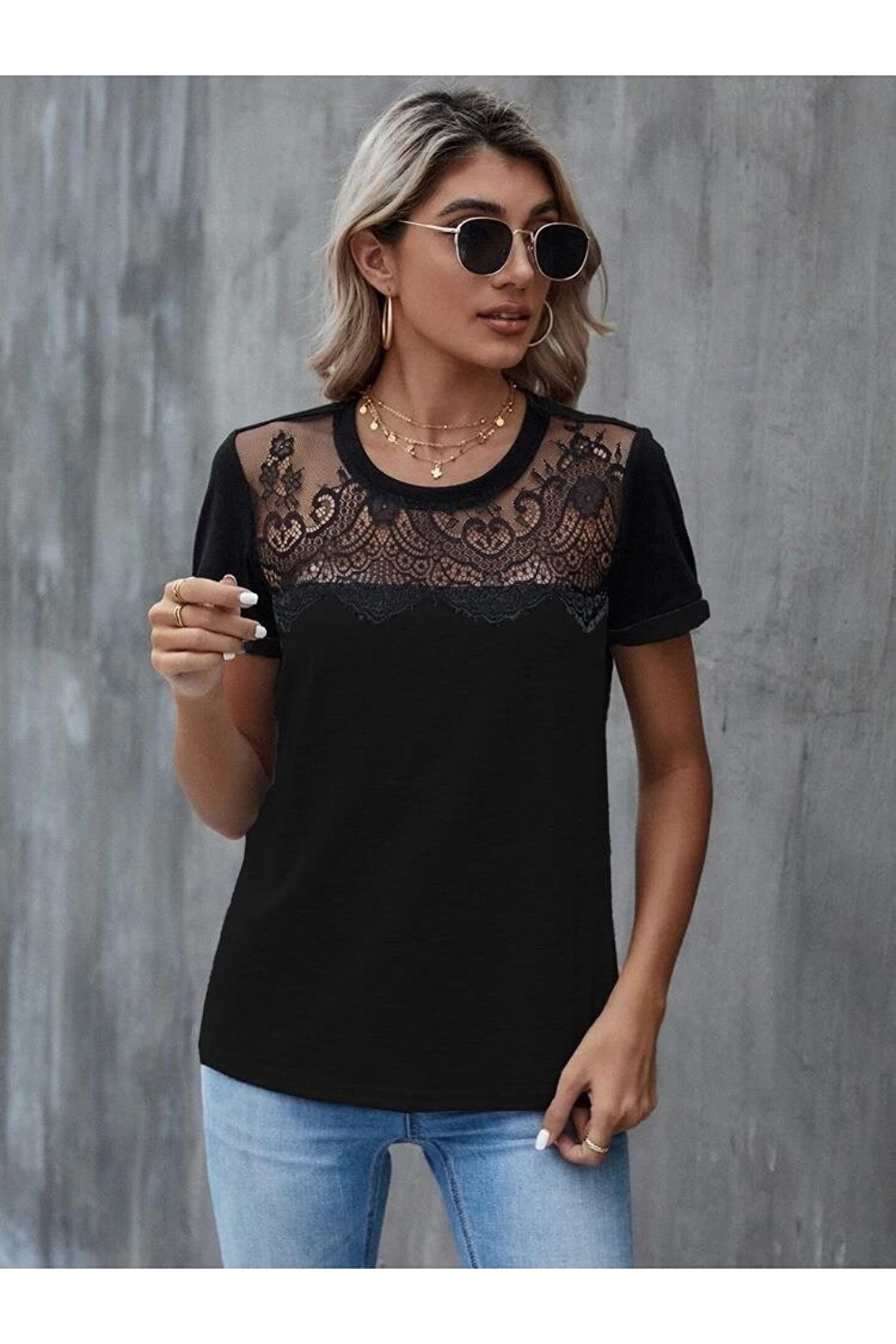 Silerra Kadın Kısa Kollu Yuvarlak Yaka ön Dantel Detaylı Viskon Bluz