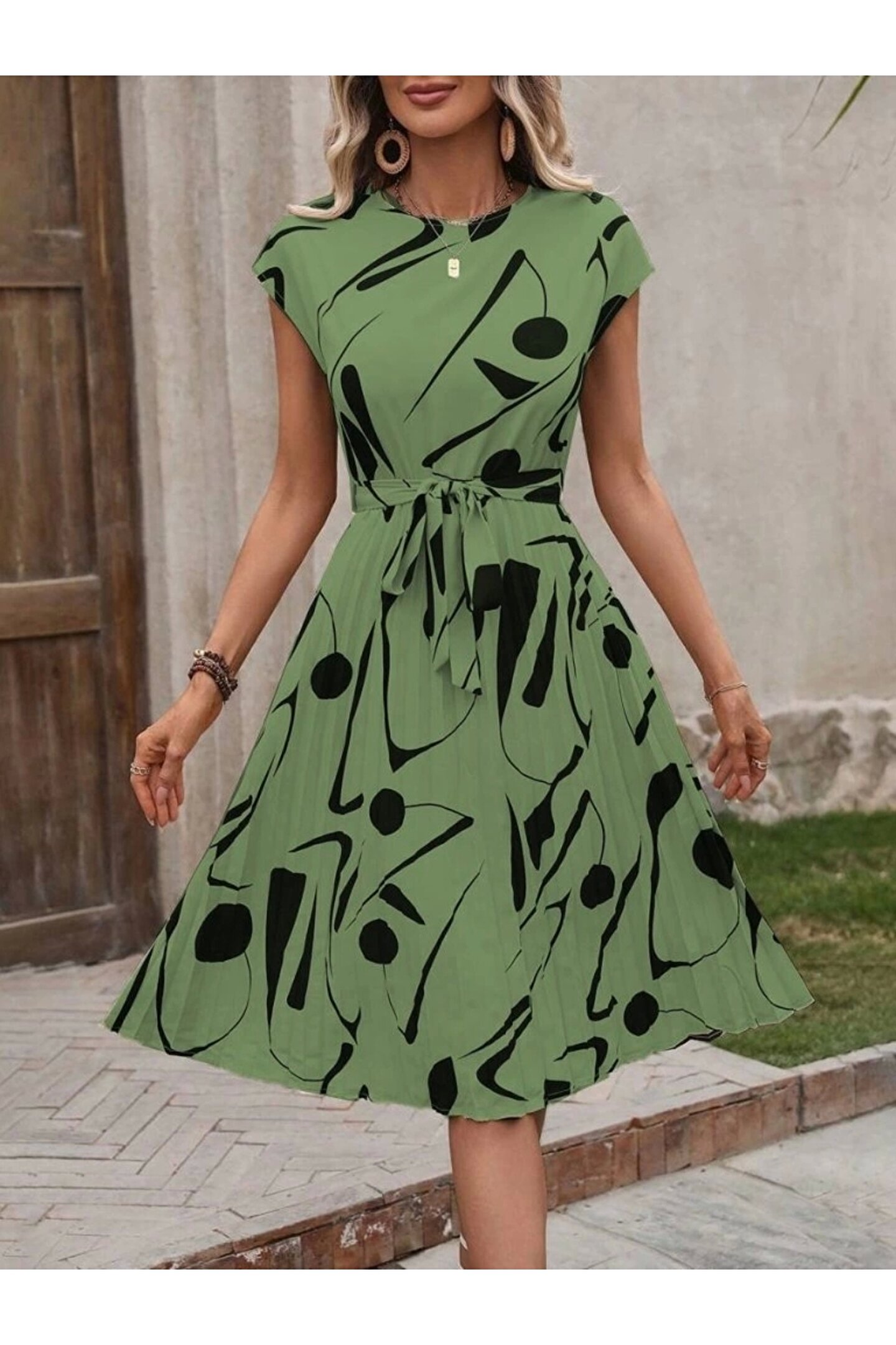 Silerra Kadın Kısa Yarasa Kollu Yuvarlak Yaka Beli Büzgülü Süprem Elbise