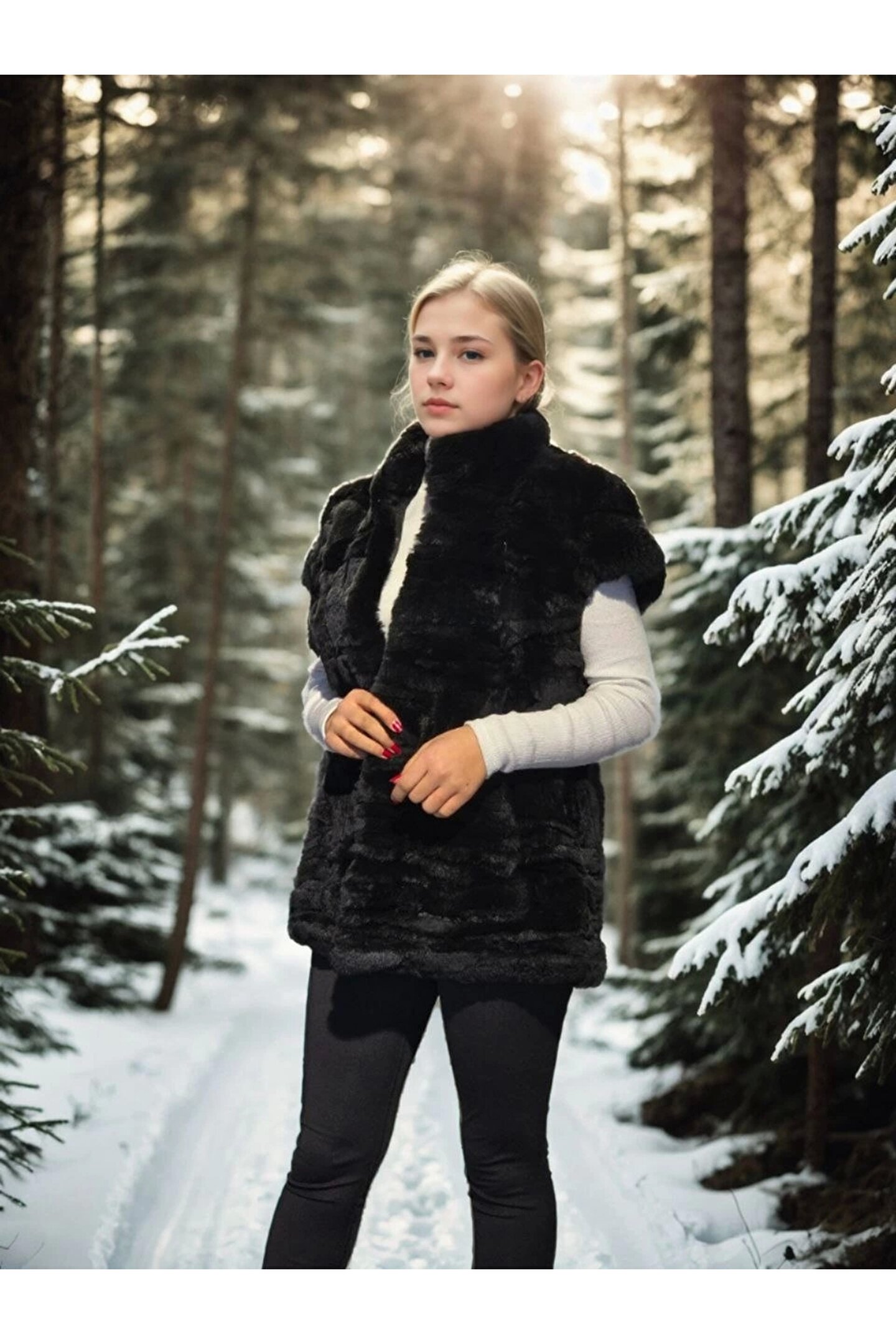 Kadın Kolsuz Hakiki Kürk - Siyah
