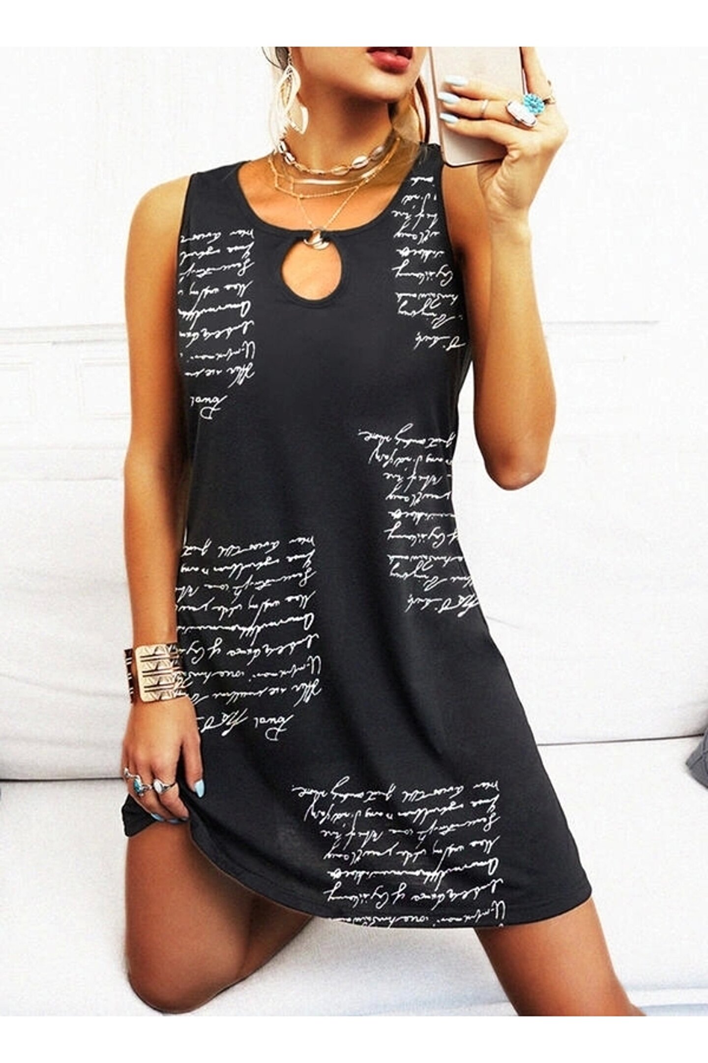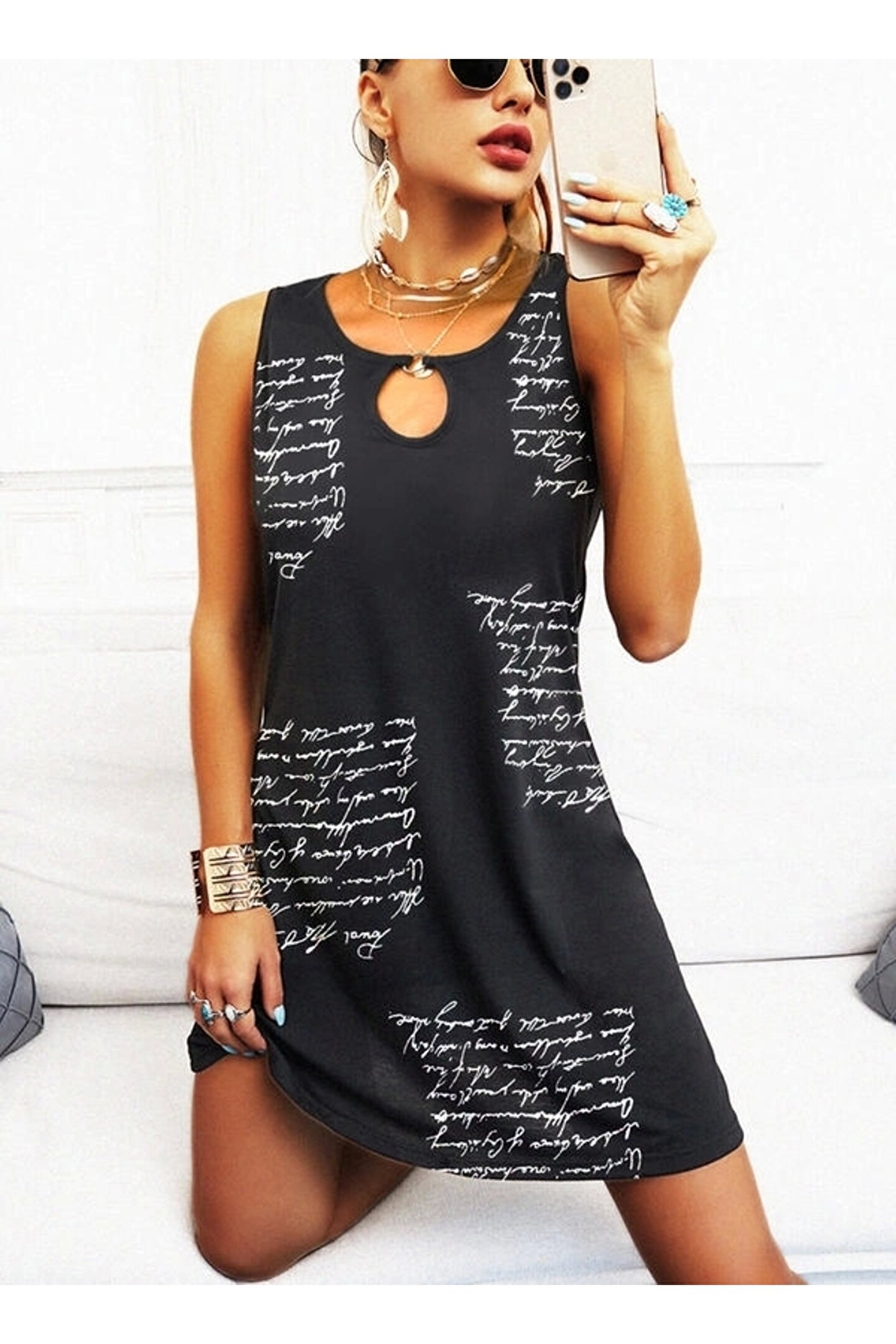 Silerra Kadın Kolsuz Halka Detay Mektup Desenli Mikro Elbise