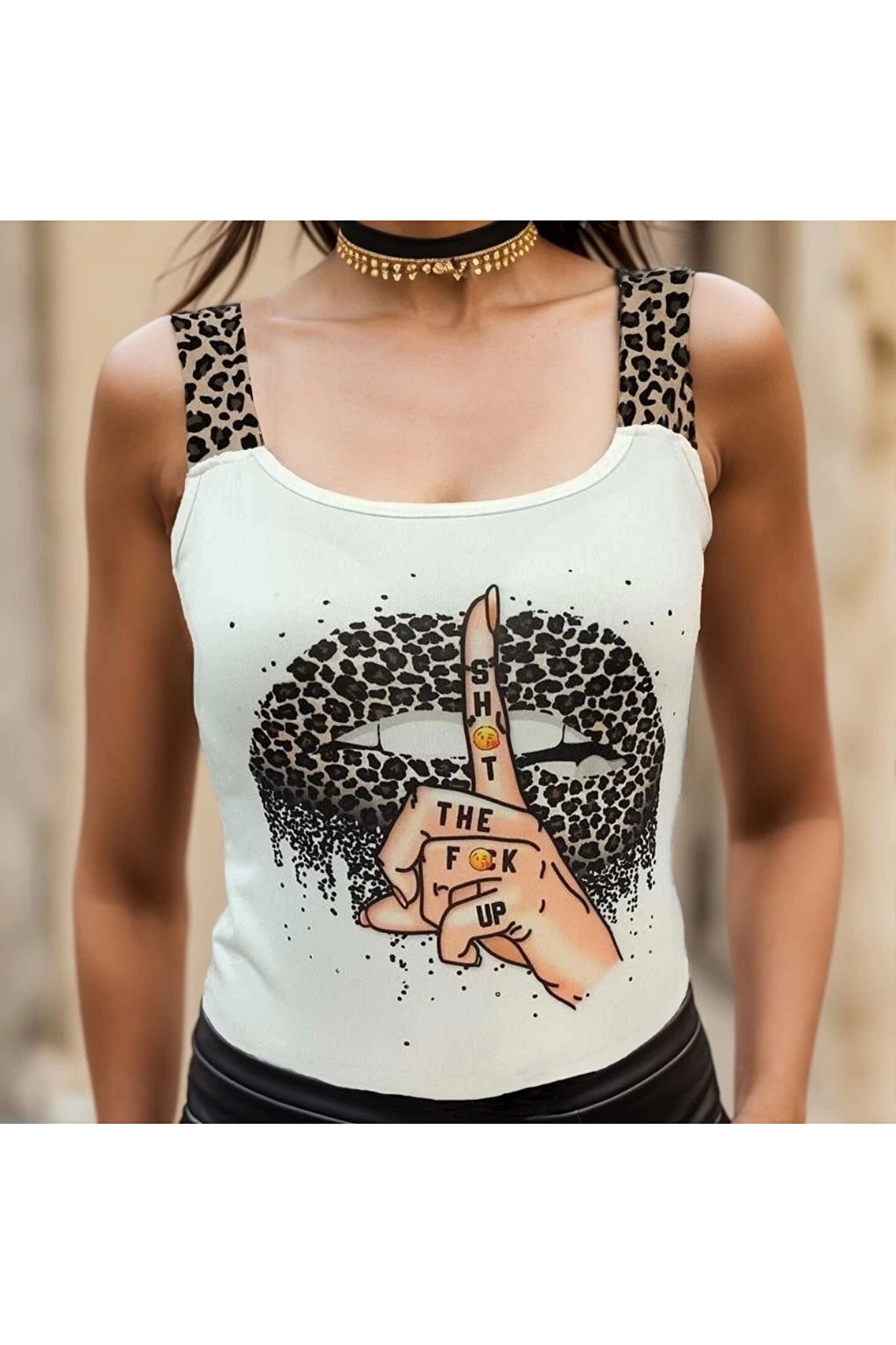 Silerra Kadın Leopar Askılı Leopar Baskılı Mikro Kumaş Bluz