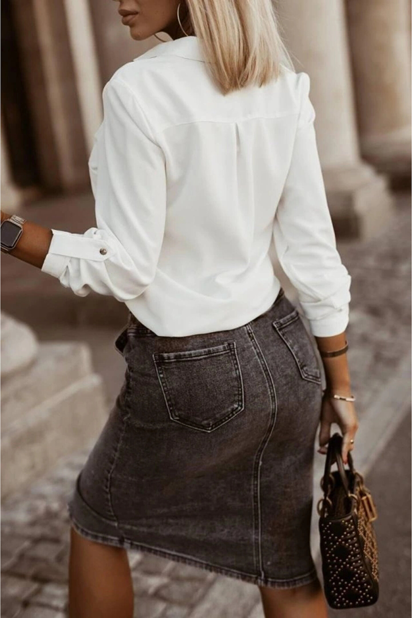 Kadın Metal Düğmeli Dokuma Viskon Kumaş Gömlek