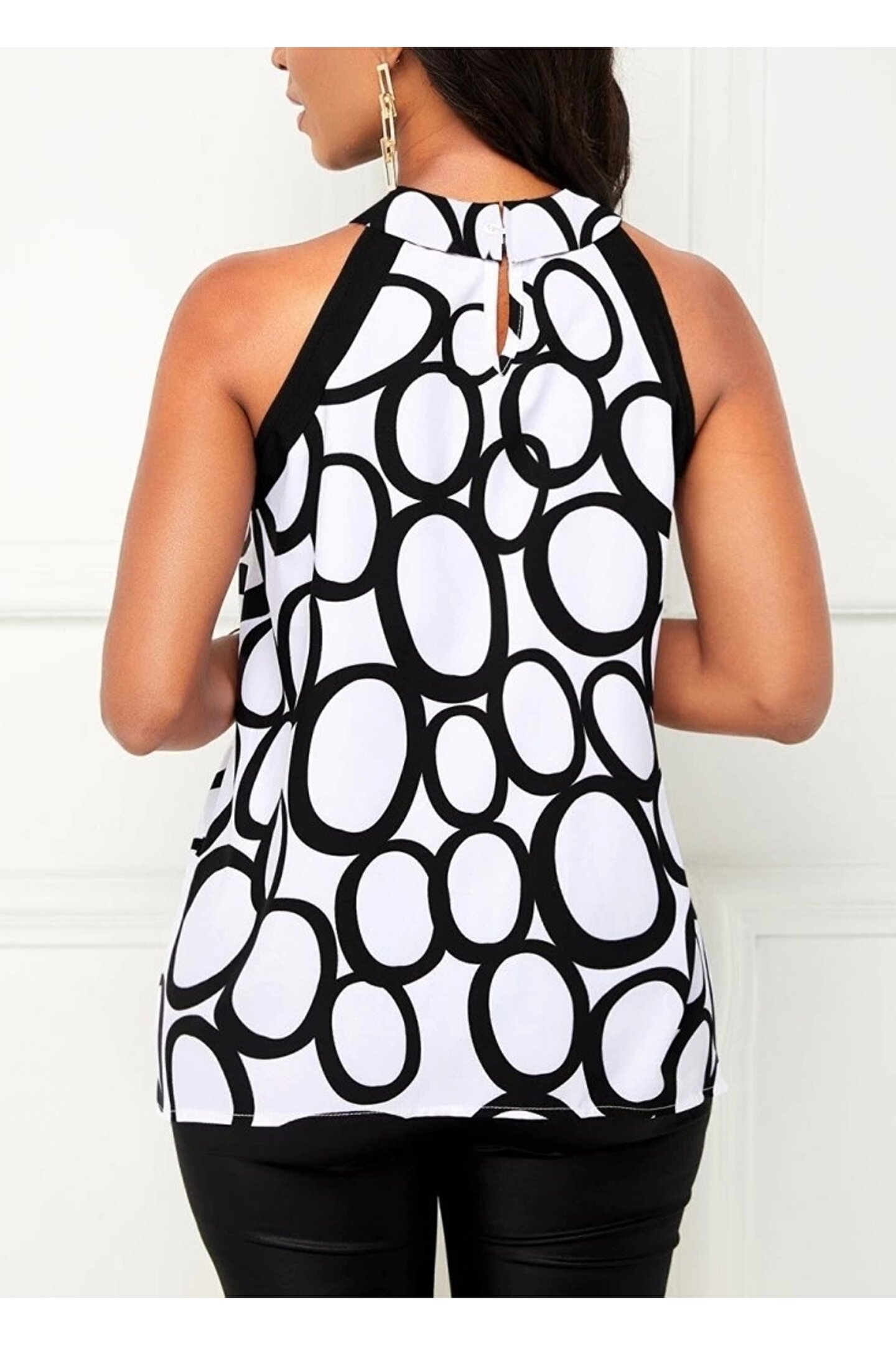 Kadın Reglan Kol Daire Yaka Desenli Asimetrik Süprem Bluz
